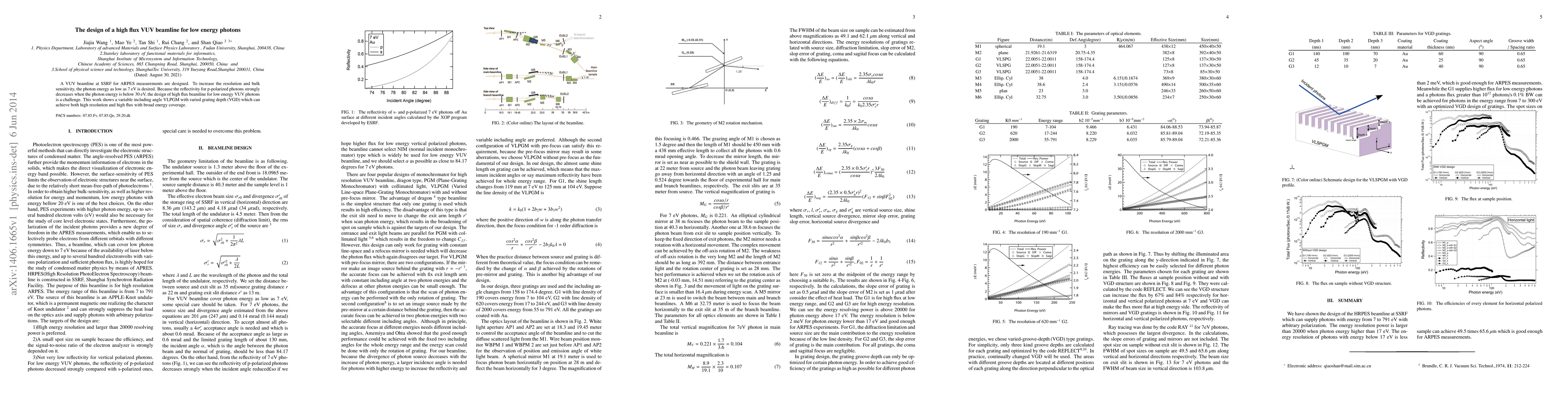 A VUV beamline at SSRF for ARPES measurements are designed. To increase the resolution and bulk sensitivity, the photon energy as low as 7 eV is desired. Because the reflectivity for p-polarized photons strongly decreases when the photon energy is below 30 eV, the design of high flux beamline for low energy VUV photons is a challenge. This work shows a variable including angle VLPGM with varied grating depth (VGD) which can achieve both high resolution and high flux with broad energy coverage.