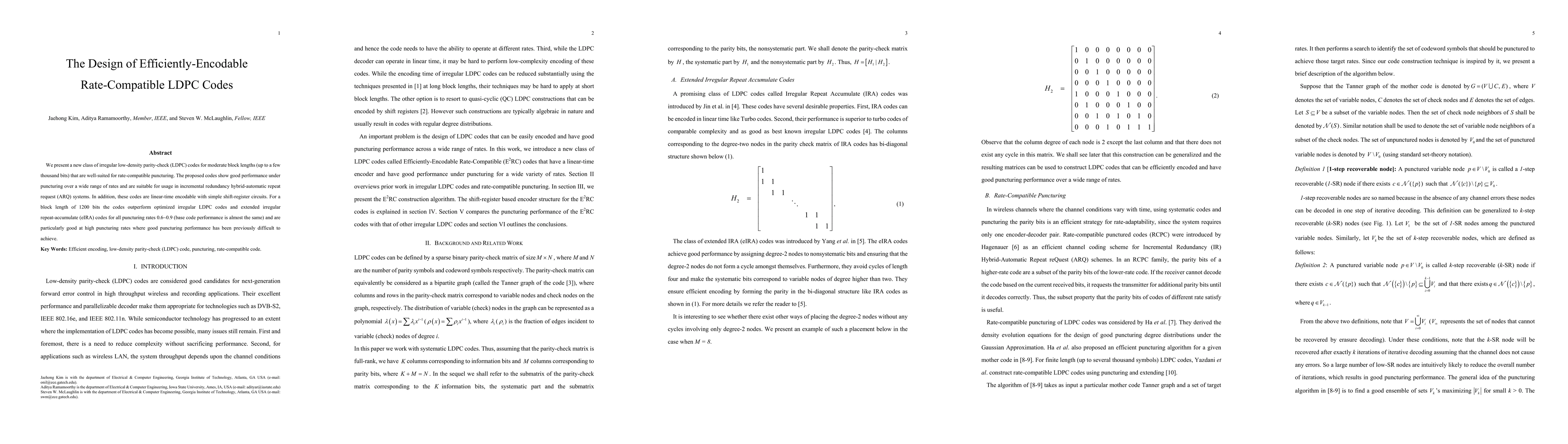 This paper introduces a new class of efficiently-encodable, irregular LDPC codes for moderate block lengths, demonstrating excellent performance under rate-compatible puncturing across a wide range of rates. These codes are linear-time encodable and outperform existing codes for high puncturing rates, making them ideal for incremental redundancy ARQ systems.