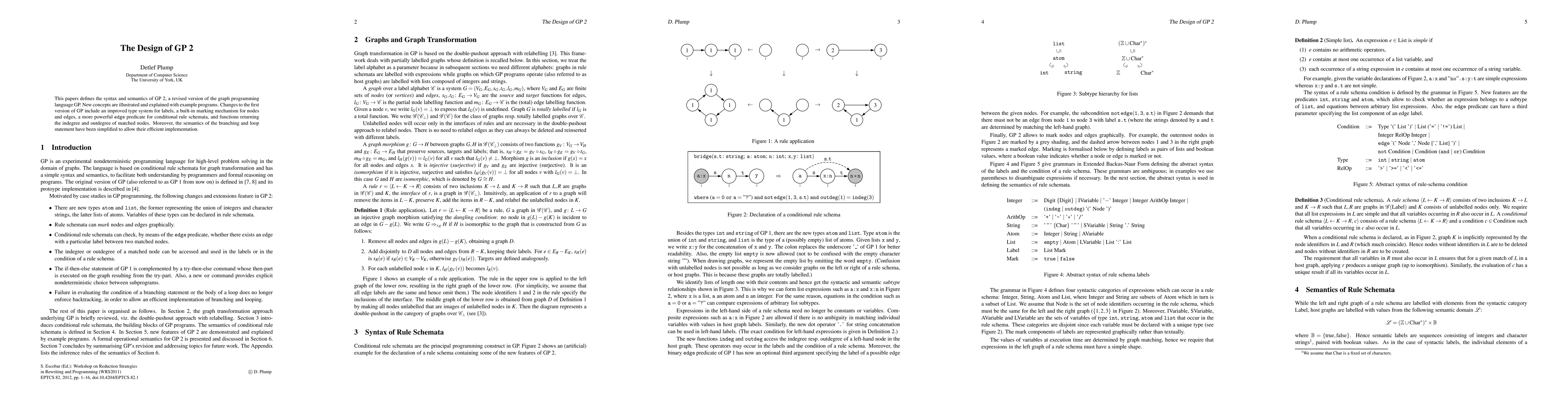 This paper introduces GP 2, a refined version of the graph programming language GP, featuring an enhanced type system, a built-in marking mechanism, a more powerful edge predicate, and functions for node degree calculation. It also simplifies the semantics of branching and loops for efficient implementation.
