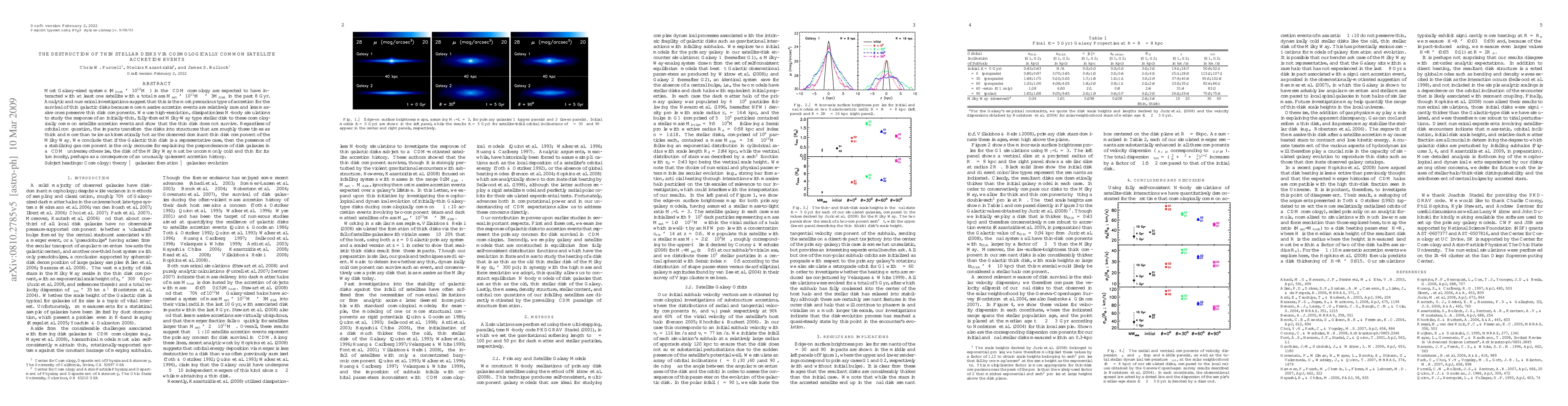 The paper presents detailed N-body simulations demonstrating the destruction of thin stellar disks during common satellite accretion events, providing insights into disk survival in cosmological contexts.