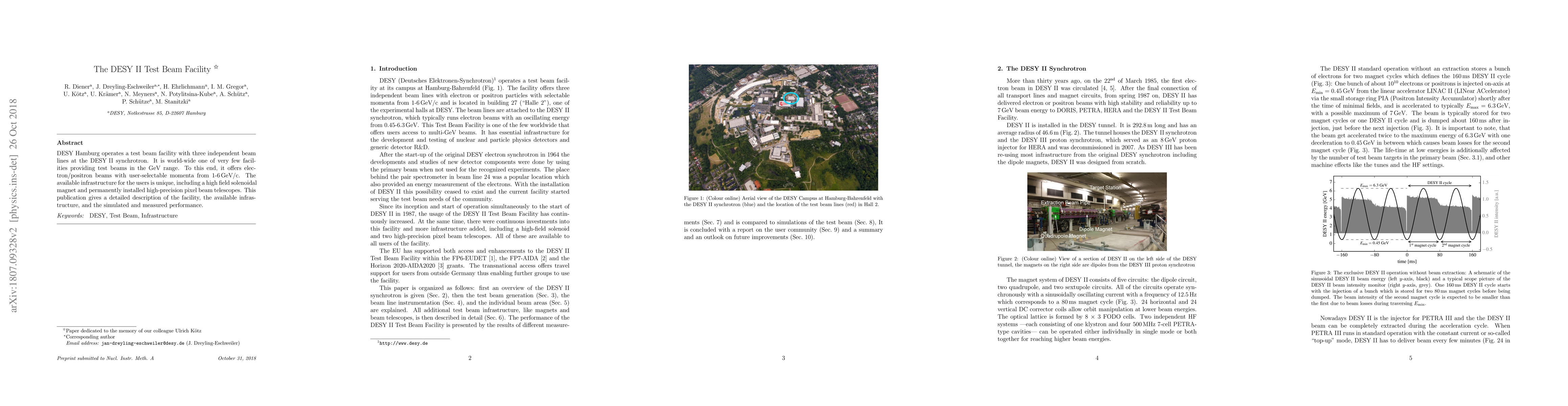 The DESY II Test Beam Facility in Hamburg offers three independent beam lines providing GeV range electron/positron beams, featuring unique infrastructure like high-field solenoidal magnets and high-precision pixel beam telescopes, along with detailed descriptions of its performance.