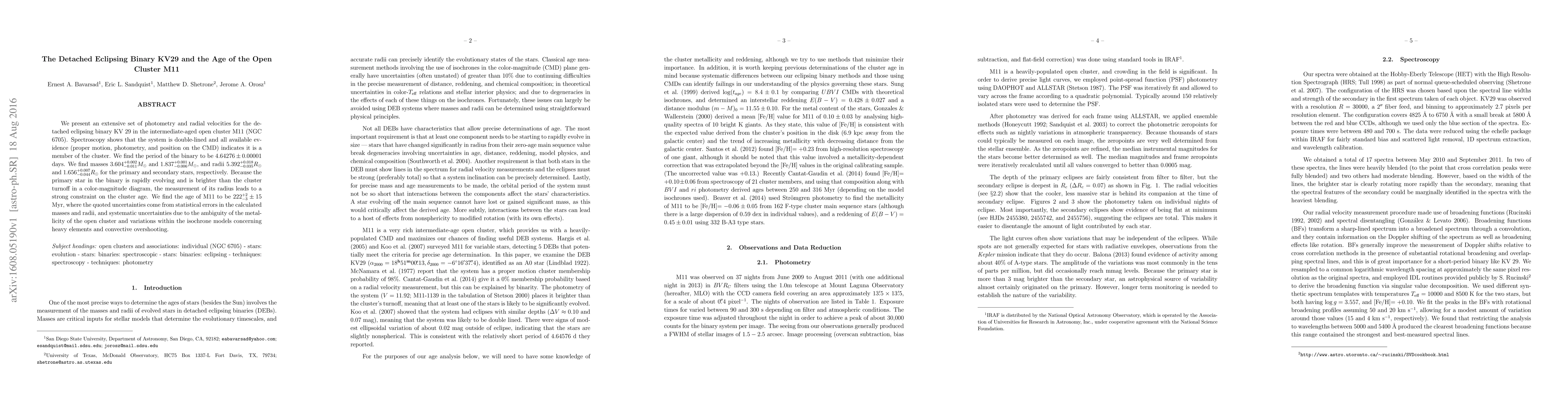 This paper analyzes the detached eclipsing binary KV 29 in the open cluster M11, determining its period, masses, and radii, which provide a strong constraint on the cluster's age. The study finds the cluster M11 to be $222^{+2}_{-3}\pm15$ Myr old, considering uncertainties from mass and radius calculations and cluster metallicity.