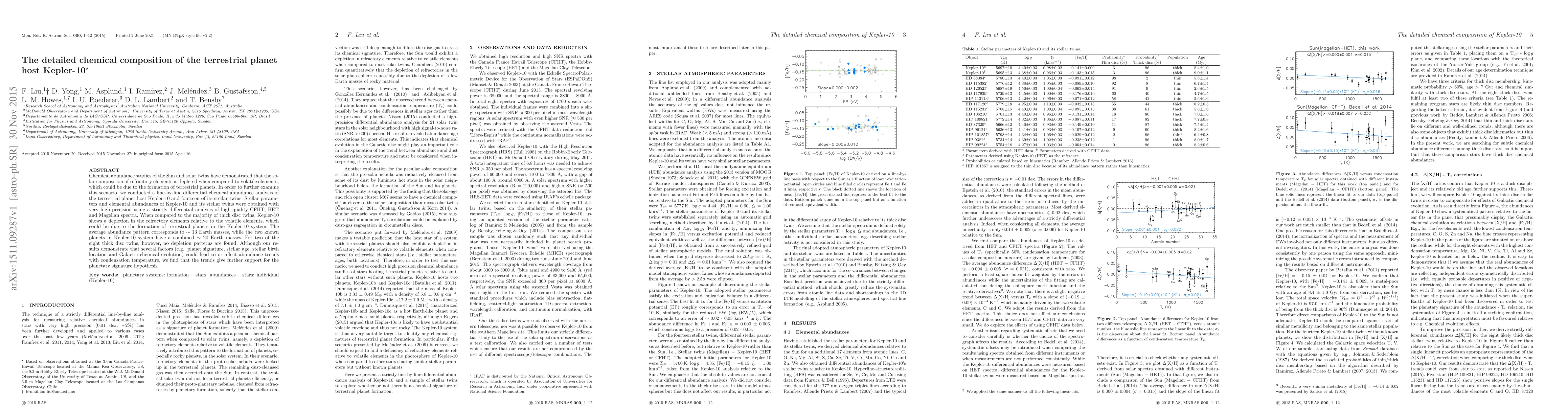 This study investigates the chemical composition of the star Kepler-10 and its potential terrestrial planets, finding a depletion in refractory elements relative to volatiles, suggesting planet formation. The analysis supports the hypothesis that planetary signatures influence stellar abundance trends.