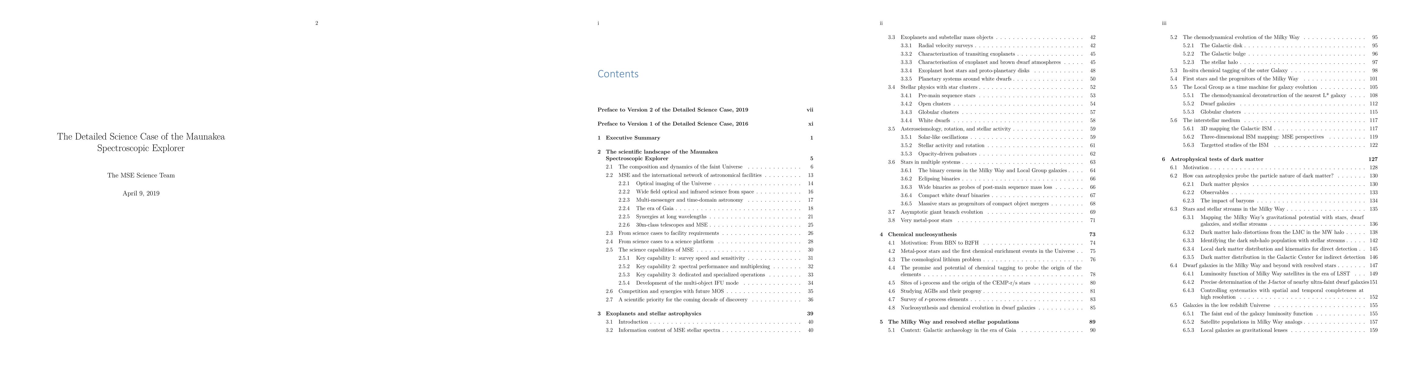 (Abridged) The Maunakea Spectroscopic Explorer (MSE) is an end-to-end science platform for the design, execution and scientific exploitation of spectroscopic surveys. It will unveil the composition and dynamics of the faint Universe and impact nearly every field of astrophysics across all spatial scales, from individual stars to the largest scale structures in the Universe. Major pillars in the science program for MSE include (i) the ultimate Gaia follow-up facility for understanding the chemistry and dynamics of the distant Milky Way, including the outer disk and faint stellar halo at high spectral resolution (ii) galaxy formation and evolution at cosmic noon, via the type of revolutionary surveys that have occurred in the nearby Universe, but now conducted at the peak of the star formation history of the Universe (iii) derivation of the mass of the neutrino and insights into inflationary physics through a cosmological redshift survey that probes a large volume of the Universe with a high galaxy density. MSE is positioned to become a critical hub in the emerging international network of front-line astronomical facilities, with scientific capabilities that naturally complement and extend the scientific power of Gaia, the Large Synoptic Survey Telescope, the Square Kilometer Array, Euclid, WFIRST, the 30m telescopes and many more.