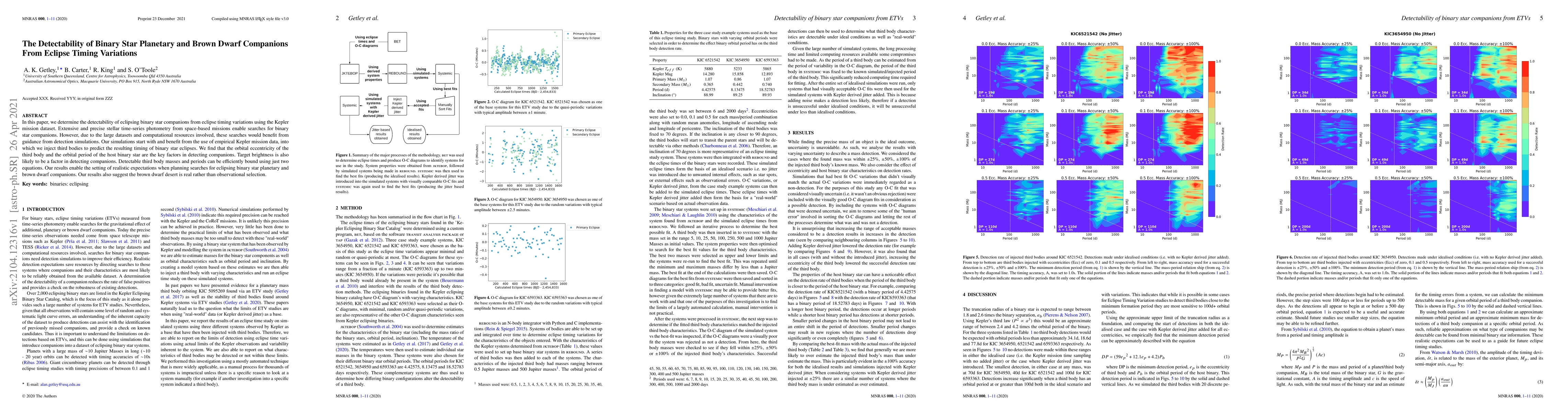 This paper uses Kepler mission data to simulate the detectability of eclipsing binary star companions via eclipse timing variations, finding that orbital eccentricity and period of the host binary, along with the target brightness, are key factors in detection. The study suggests the "brown dwarf desert" is likely real.