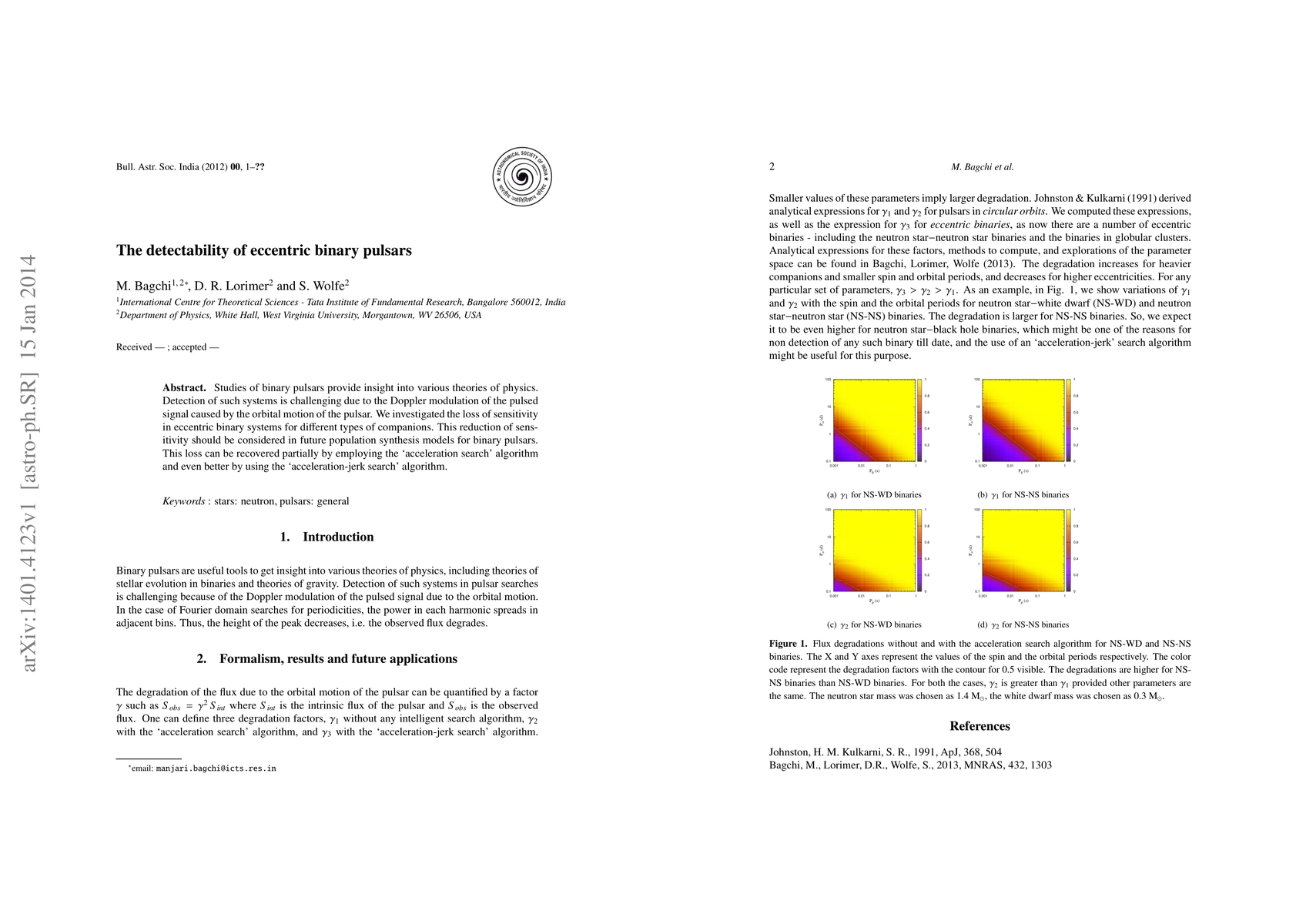 Studies of binary pulsars provide insight into various theories of physics. Detection of such systems is challenging due to the Doppler modulation of the pulsed signal caused by the orbital motion of the pulsar. We investigated the loss of sensitivity in eccentric binary systems for different types of companions. This reduction of sensitivity should be considered in future population synthesis models for binary pulsars. This loss can be recovered partially by employing the `acceleration search' algorithm and even better by using the `acceleration-jerk search' algorithm.