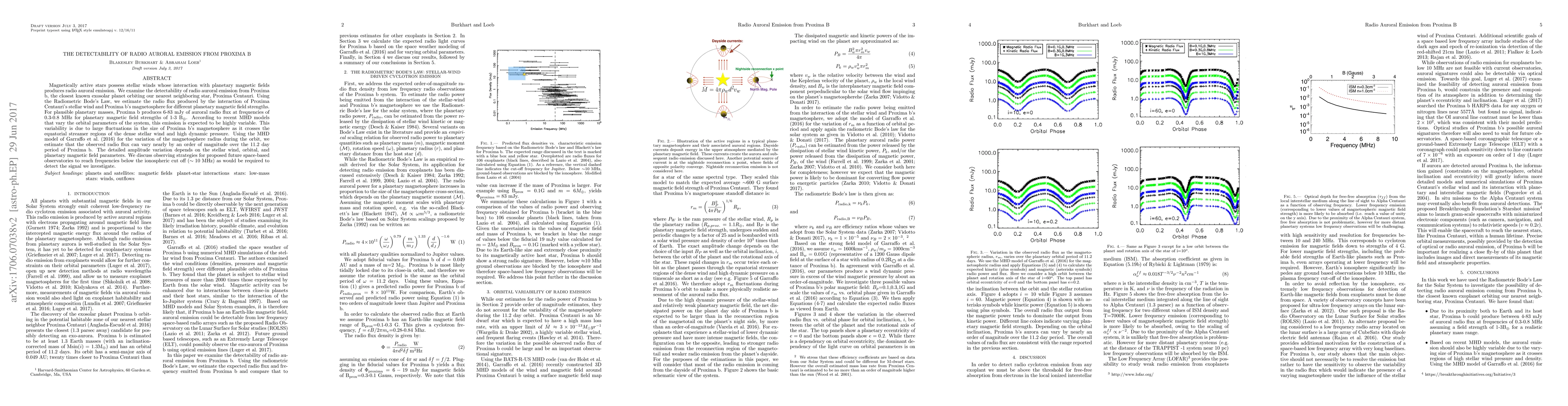 The paper introduces an application of the Radiometric Bode's Law to estimate radio auroral emission from an exoplanet, specifically Proxima b, and discusses observational strategies for future space-based observatories.