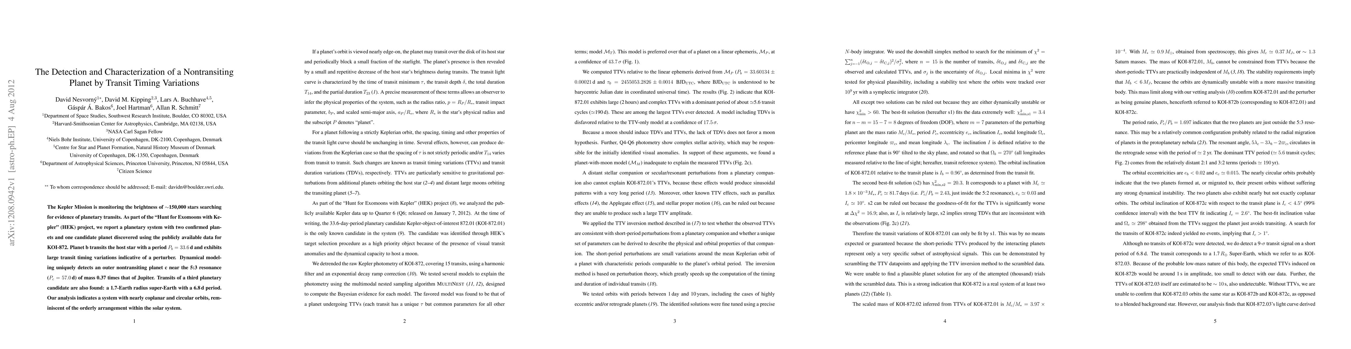 The research utilized Kepler mission data to detect and characterize a nontransiting planet through transit timing variations (TTVs) in the KOI-872 system, employing dynamical modeling and Bayesian evidence analysis.
