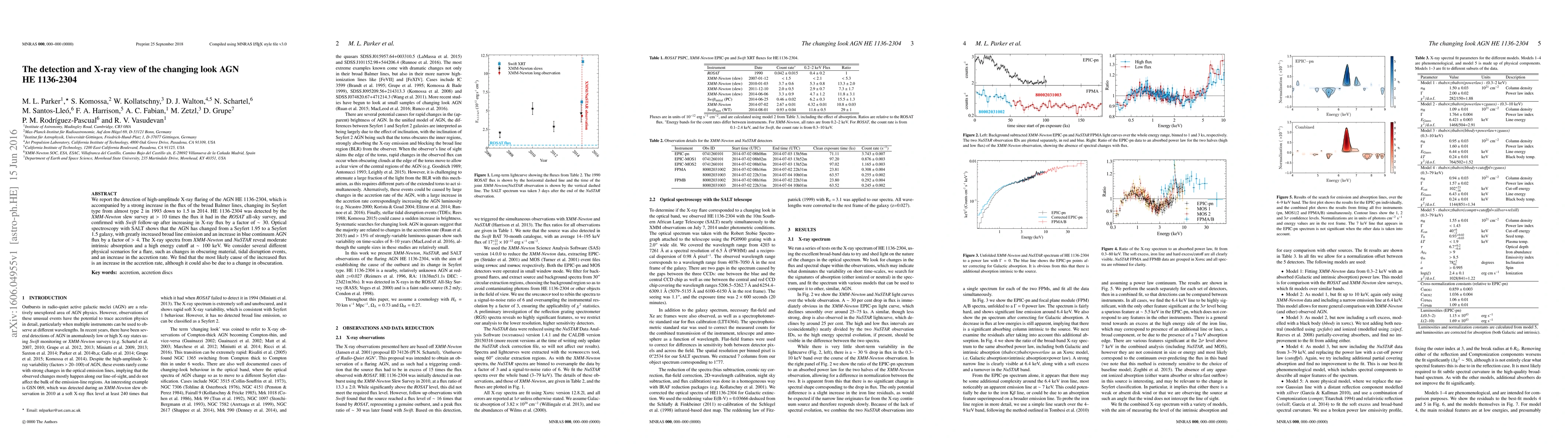 We report the detection of high-amplitude X-ray flaring of the AGN HE 1136-2304, which is accompanied by a strong increase in the flux of the broad Balmer lines, changing its Seyfert type from almost type 2 in 1993 down to 1.5 in 2014. HE 1136-2304 was detected by the XMM-Newton slew survey at >10 times the flux it had in the ROSAT all-sky survey, and confirmed with Swift follow-up after increasing in X-ray flux by a factor of 30. Optical spectroscopy with SALT shows that the AGN has changed from a Seyfert 1.95 to a Seyfert 1.5 galaxy, with greatly increased broad line emission and an increase in blue continuum AGN flux by a factor of > 4. The X-ray spectra from XMM-Newton and NuSTAR reveal moderate intrinsic absorption and a high energy cutoff at 100 keV. We consider several different physical scenarios for a flare, such as changes in obscuring material, tidal disruption events, and an increase in the accretion rate. We find that the most likely cause of the increased flux is an increase in the accretion rate, although it could also be due to a change in obscuration.
