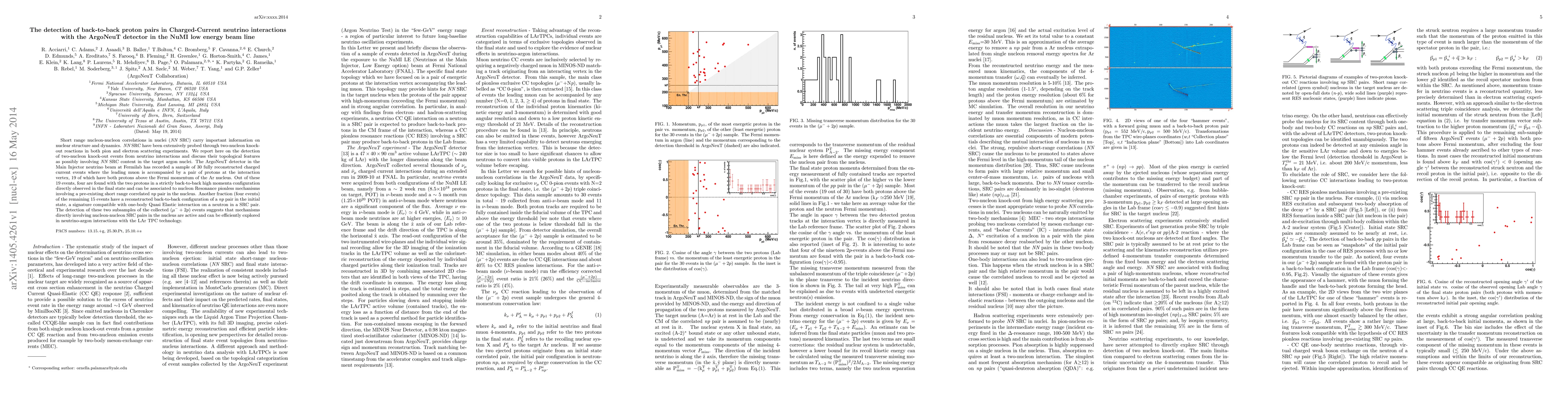Short range nucleon-nucleon correlations in nuclei (NN SRC) carry important information on nuclear structure and dynamics. NN SRC have been extensively probed through two-nucleon knock- out reactions in both pion and electron scattering experiments. We report here on the detection of two-nucleon knock-out events from neutrino interactions and discuss their topological features as possibly involving NN SRC content in the target argon nuclei. The ArgoNeuT detector in the Main Injector neutrino beam at Fermilab has recorded a sample of 30 fully reconstructed charged current events where the leading muon is accompanied by a pair of protons at the interaction vertex, 19 of which have both protons above the Fermi momentum of the Ar nucleus. Out of these 19 events, four are found with the two protons in a strictly back-to-back high momenta configuration directly observed in the final state and can be associated to nucleon Resonance pionless mechanisms involving a pre-existing short range correlated np pair in the nucleus. Another fraction (four events) of the remaining 15 events have a reconstructed back-to-back configuration of a np pair in the initial state, a signature compatible with one-body Quasi Elastic interaction on a neutron in a SRC pair. The detection of these two subsamples of the collected (mu- + 2p) events suggests that mechanisms directly involving nucleon-nucleon SRC pairs in the nucleus are active and can be efficiently explored in neutrino-argon interactions with the LAr TPC technology.
