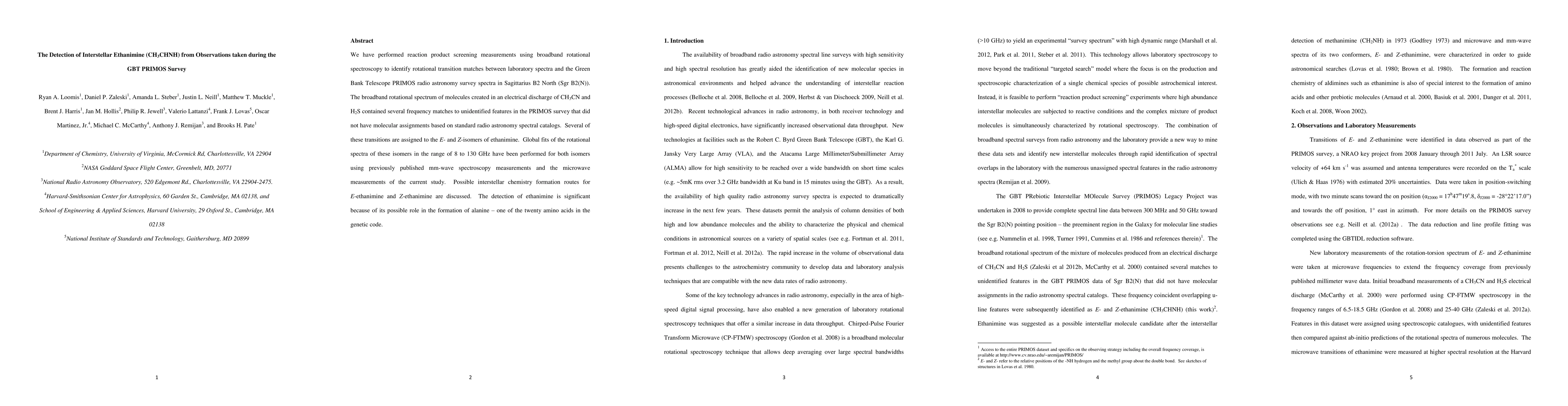 The paper presents the first interstellar detection of E- and Z-ethanimine, supported by laboratory reaction product screening measurements and spectroscopic evidence.