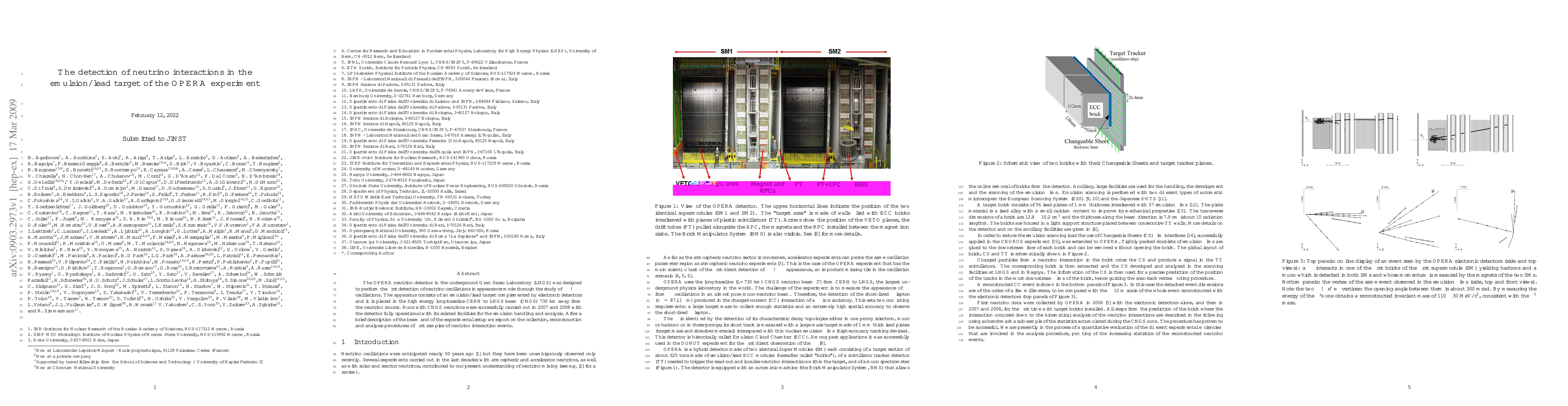 The OPERA experiment in Gran Sasso Laboratory successfully detected neutrino oscillations by observing $\nu_\mu\to\nu_\tau$ interactions in an emulsion/lead target, utilizing a long-baseline beam from CERN. The analysis of collected samples confirmed the detector's operational efficiency and handling procedures.