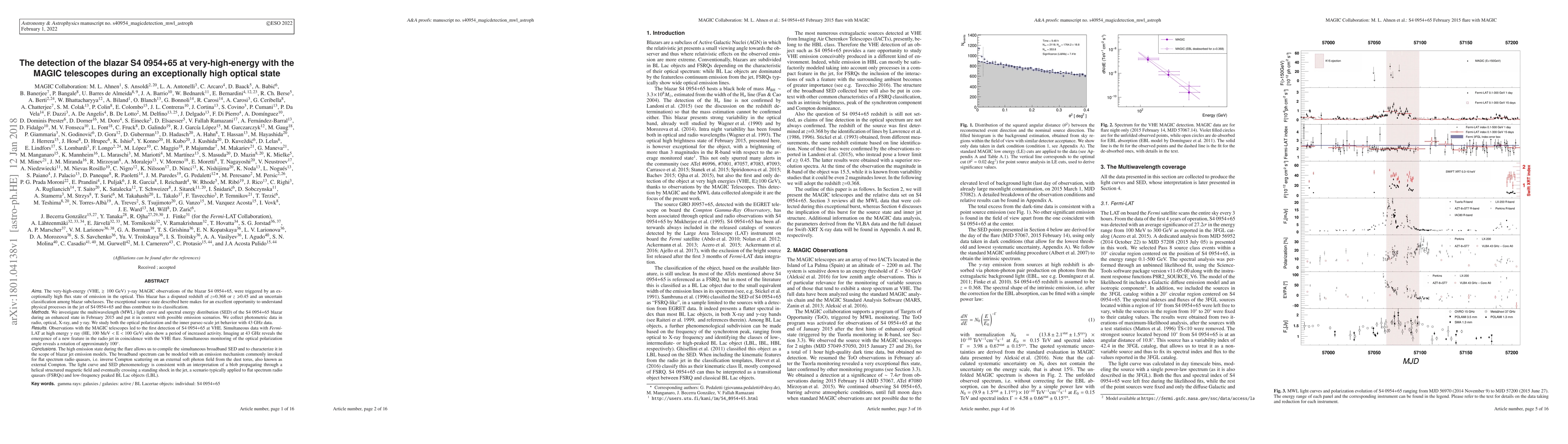 The MAGIC telescopes detected the blazar S4 0954+65 at very-high-energy gamma rays during an exceptionally high optical state in February 2015, providing insights into the jet's physical processes and contributing to its classification. The study combines multiwavelength data and reveals a new feature in the radio jet and a significant optical polarization rotation, suggesting a blob propagating through a helical magnetic field.
