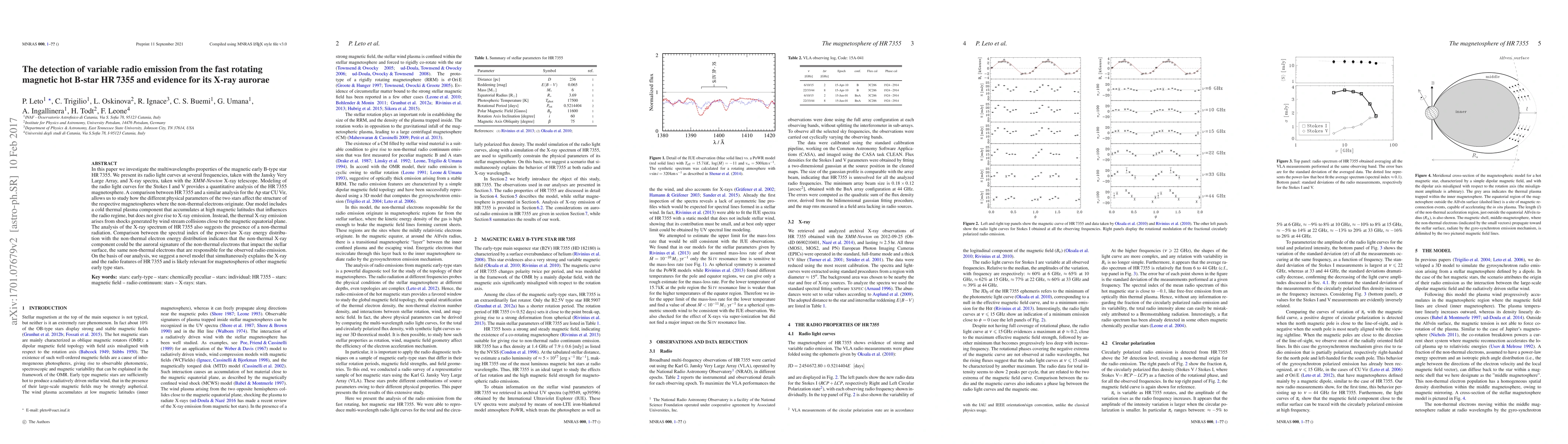This paper investigates the magnetic early B-type star HR7355, revealing variable radio emission and X-ray aurorae through multiwavelength observations. The study proposes a novel model explaining the X-ray and radio features, suggesting non-thermal electrons impacting the stellar surface generate the observed phenomena.