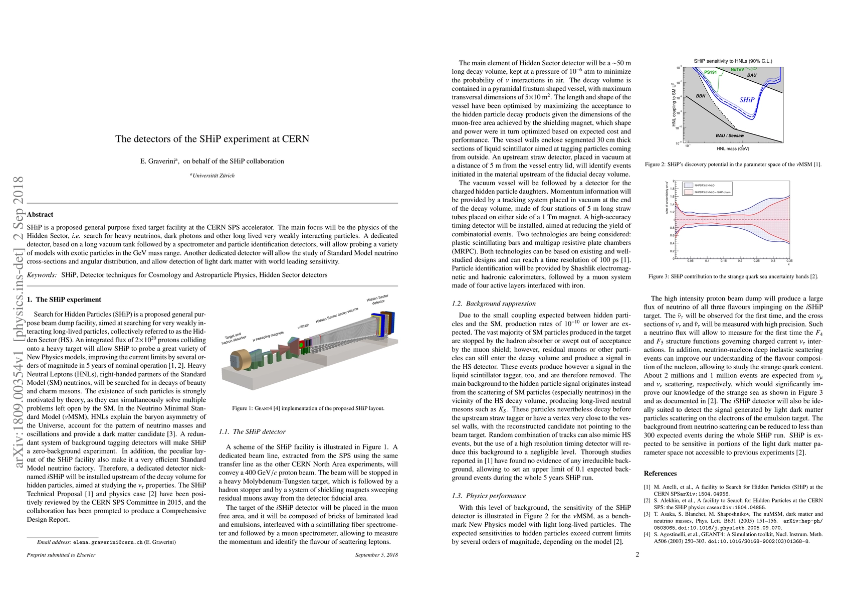SHiP is a proposed general purpose fixed target facility at the CERN SPS accelerator. The main focus will be the physics of the Hidden Sector, \textit{i.e.} search for heavy neutrinos, dark photons and other long lived very weakly interacting particles. A dedicated detector, based on a long vacuum tank followed by a spectrometer and particle identification detectors, will allow probing a variety of models with exotic particles in the GeV mass range. Another dedicated detector will allow the study of Standard Model neutrino cross-sections and angular distribution, and allow detection of light dark matter with world leading sensitivity.