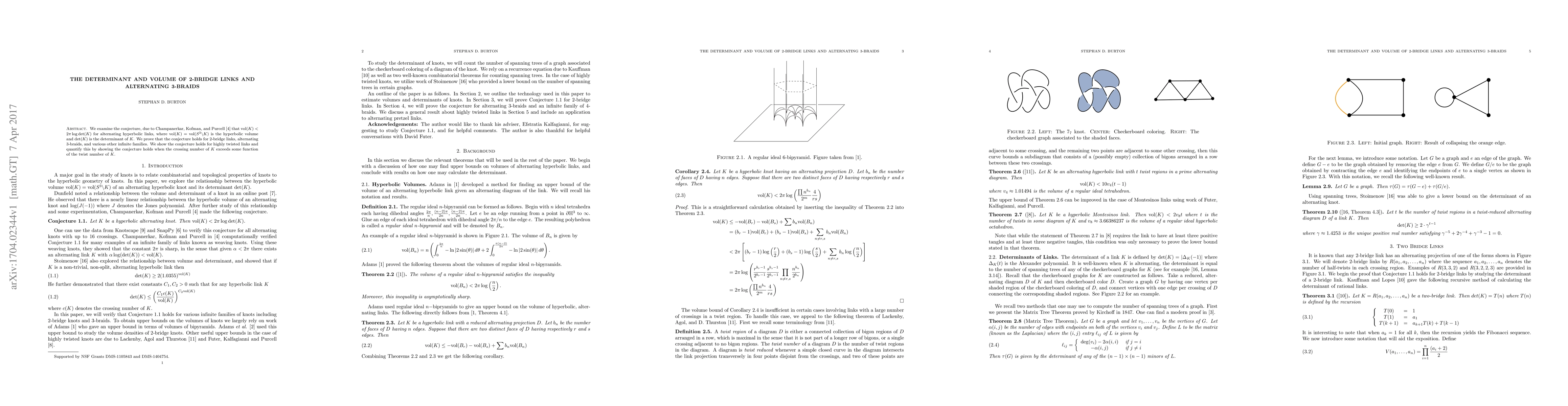 We examine the conjecture, due to Champanerkar, Kofman, and Purcell that $\text{vol}(K) < 2 \pi \log \det (K)$ for alternating hyperbolic links, where $\text{vol}(K) = \text{vol}(S^3\backslash K)$ is the hyperbolic volume and $\det(K)$ is the determinant of $K$. We prove that the conjecture holds for 2-bridge links, alternating 3-braids, and various other infinite families. We show the conjecture holds for highly twisted links and quantify this by showing the conjecture holds when the crossing number of $K$ exceeds some function of the twist number of $K$.