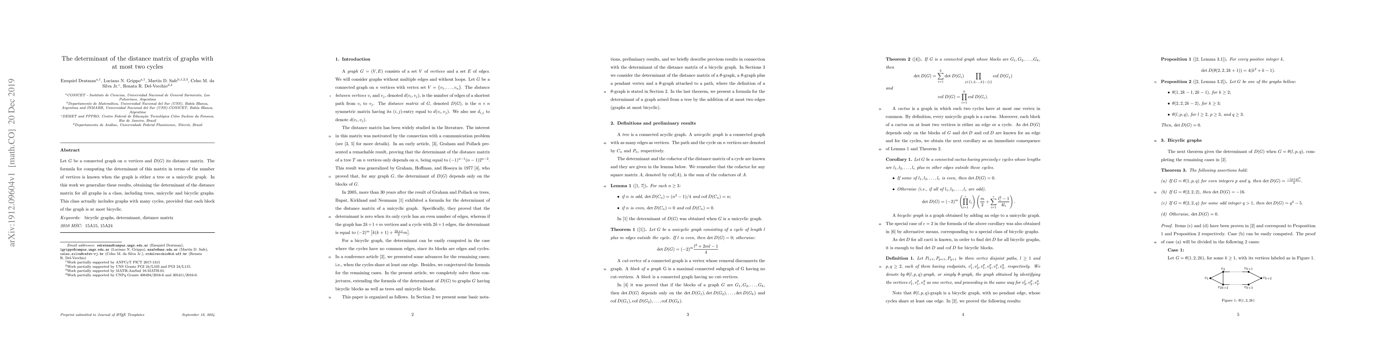 Let $G$ be a connected graph on $n$ vertices and $D(G)$ its distance matrix. The formula for computing the determinant of this matrix in terms of the number of vertices is known when the graph is either a tree or {a} unicyclic graph. In this work we generalize these results, obtaining the determinant of the distance matrix for {all graphs} in a {class, including trees, unicyclic and bicyclic graphs. This class actually includes graphs with many cycles, provided that each block of the graph is at most bicyclic.}