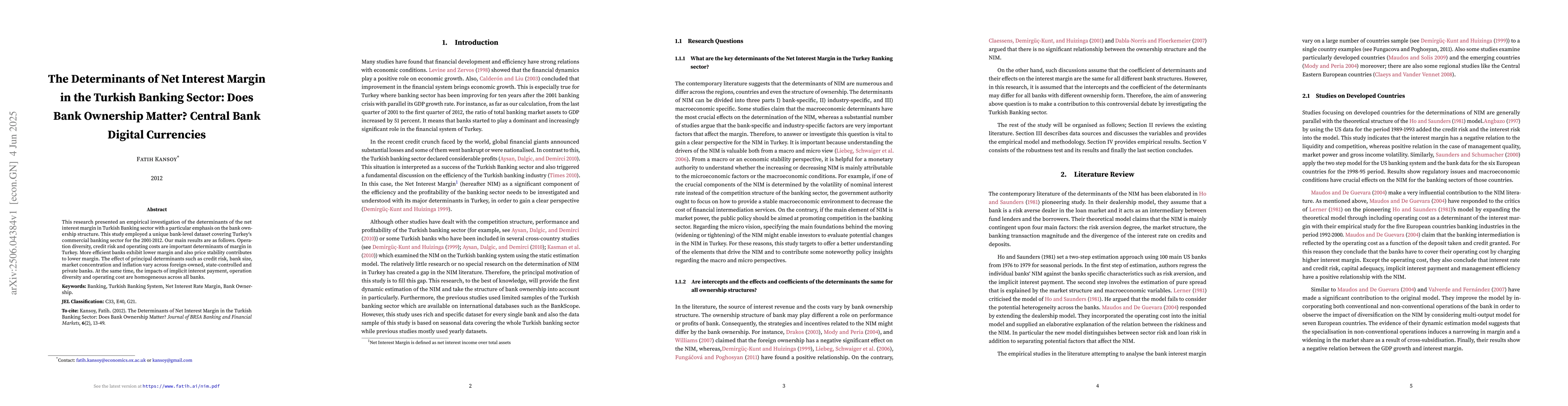 The study offers an empirical analysis of determinants of net interest margins, considering bank ownership structures in the Turkish banking sector.