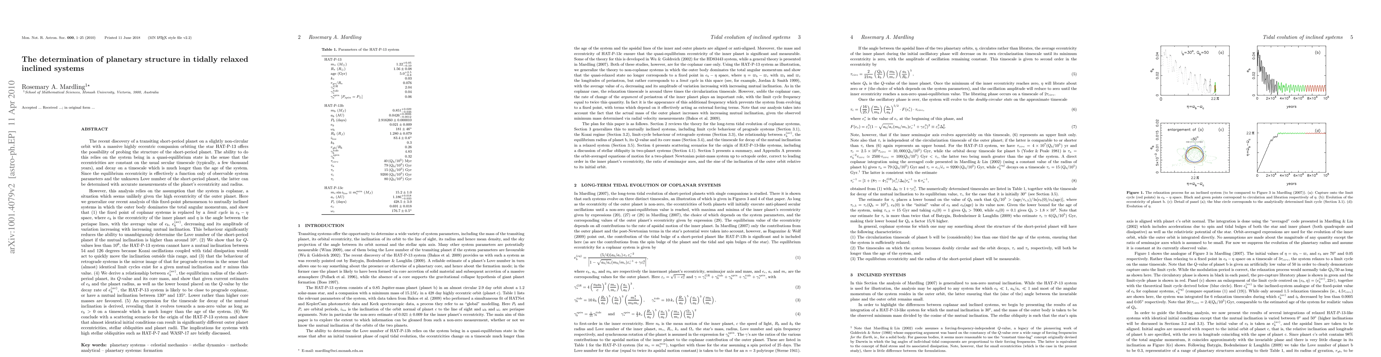 [Abridged] The recent discovery of a transiting planet on a non-circular orbit with a massive highly eccentric companion orbiting HAT-P-13 offers the possibility of probing the structure of the short-period planet. The ability to do this relies on the system being in a quasi-equilibrium state in the sense that the eccentricities are constant on the usual secular timescale, and decay on a timescale which is much longer than the age of the system. Since the equilibrium eccentricity is effectively a function only of observable system parameters and the unknown Love number of the short-period planet, the latter can be determined with accurate measurements of the planet's eccentricity and radius. However, this analysis relies on the unlikely assumption that the system is coplanar. Here we generalize our recent analysis of this fixed-point phenomenon to mutually inclined systems and show that the fixed point of coplanar systems is replaced by a limit cycle, with the average value of the eccentricity decreasing and its amplitude of variation increasing with increasing mutual inclination. This behaviour significantly reduces the ability to unambiguously determine the Love number of the short-period planet if the mutual inclination is higher than around 10^o. We show that for Q-values less than 10^6, the HAT-P-13 system cannot have a mutual inclination between 54 and 126^o because Kozai oscillations coupled with tidal dissipation would act to quickly move the inclination outside this range, and that the behaviour of retrograde systems is the mirror image of that for prograde systems. We derive a relationship between the equilibrium radius of the short-period planet, its Q-value and its core mass, and show that given current estimates of e_b and the planet radius, the HAT-P-13 system is likely to be close to coplanar [...]