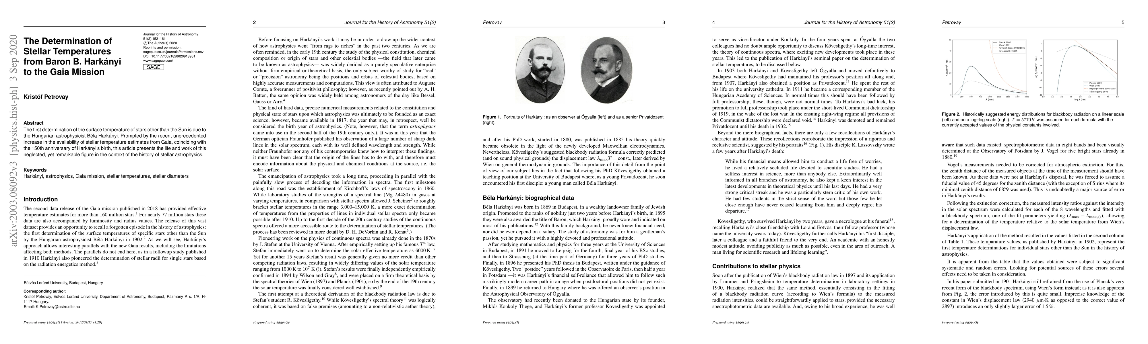 The first determination of the surface temperature of stars other than the Sun is due to the Hungarian astrophysicist B\'ela Hark\'anyi. Prompted by the recent unprecedented increase in the availability of stellar temperature estimates from Gaia, coinciding with the 150th anniversary of Hark\'anyi's birth, this article presents the life and work of this neglected, yet remarkable figure in the context of the history of stellar astrophysics.