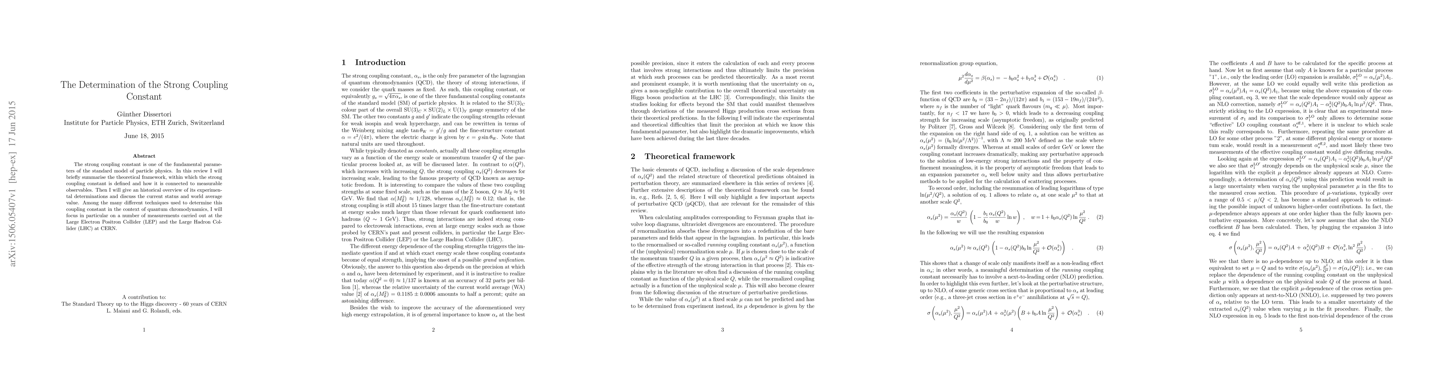 This paper reviews the theoretical framework for the strong coupling constant, a key parameter in particle physics, and discusses its historical experimental determinations. It focuses on measurements from the LEP and LHC at CERN, presenting the current status and world average value.
