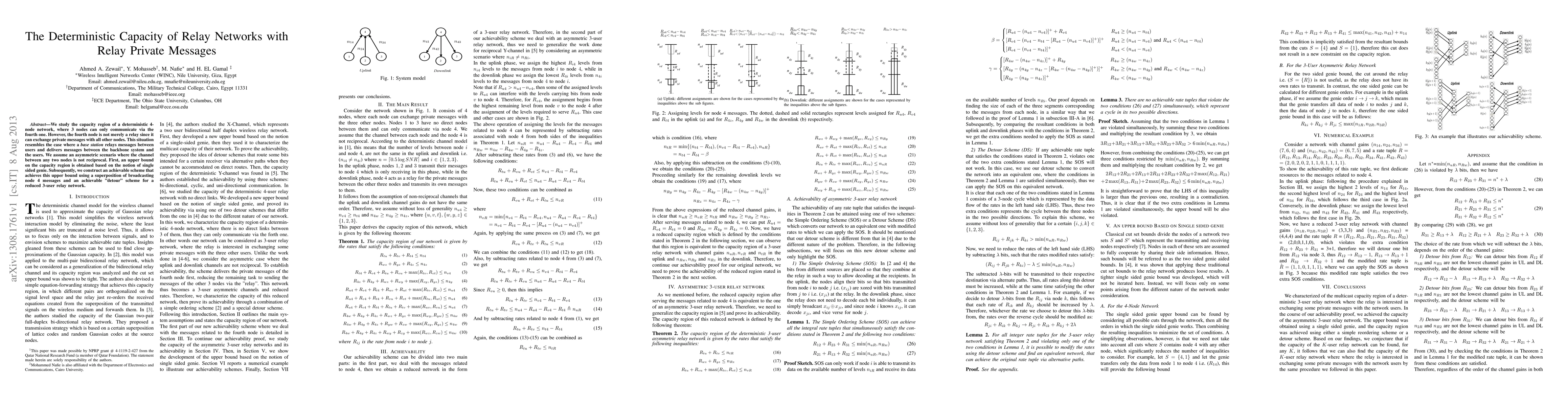 This paper investigates the capacity region of a deterministic 4-node relay network where a central node can both relay and exchange private messages. An upper bound on the capacity region is derived, followed by a scheme that achieves this bound using superposition techniques and a "detour" method for a simplified 3-user relay network.