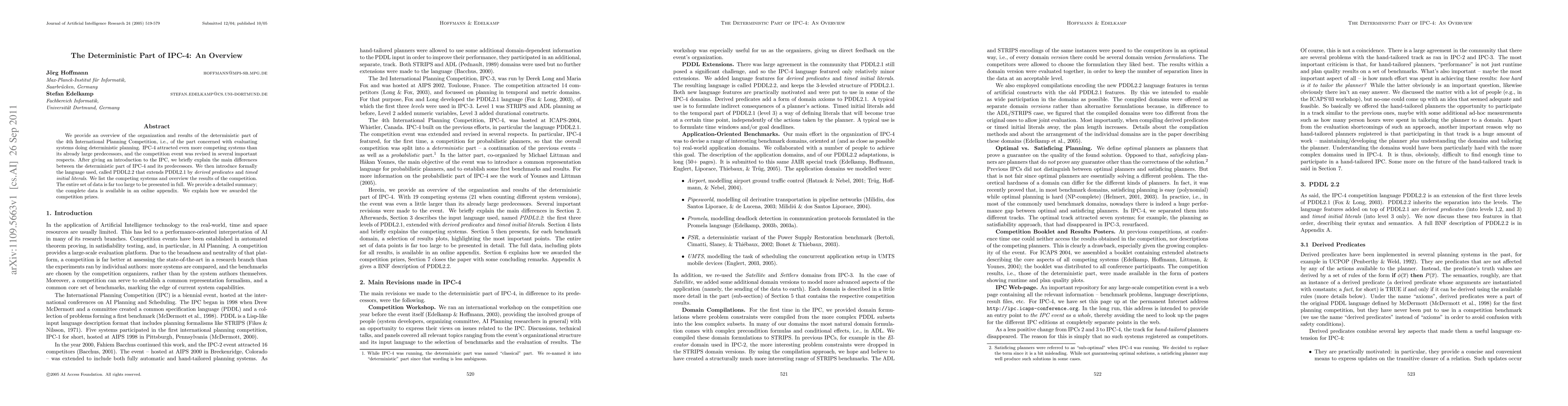 We provide an overview of the organization and results of the deterministic part of the 4th International Planning Competition, i.e., of the part concerned with evaluating systems doing deterministic planning. IPC-4 attracted even more competing systems than its already large predecessors, and the competition event was revised in several important respects. After giving an introduction to the IPC, we briefly explain the main differences between the deterministic part of IPC-4 and its predecessors. We then introduce formally the language used, called PDDL2.2 that extends PDDL2.1 by derived predicates and timed initial literals. We list the competing systems and overview the results of the competition. The entire set of data is far too large to be presented in full. We provide a detailed summary; the complete data is available in an online appendix. We explain how we awarded the competition prizes.