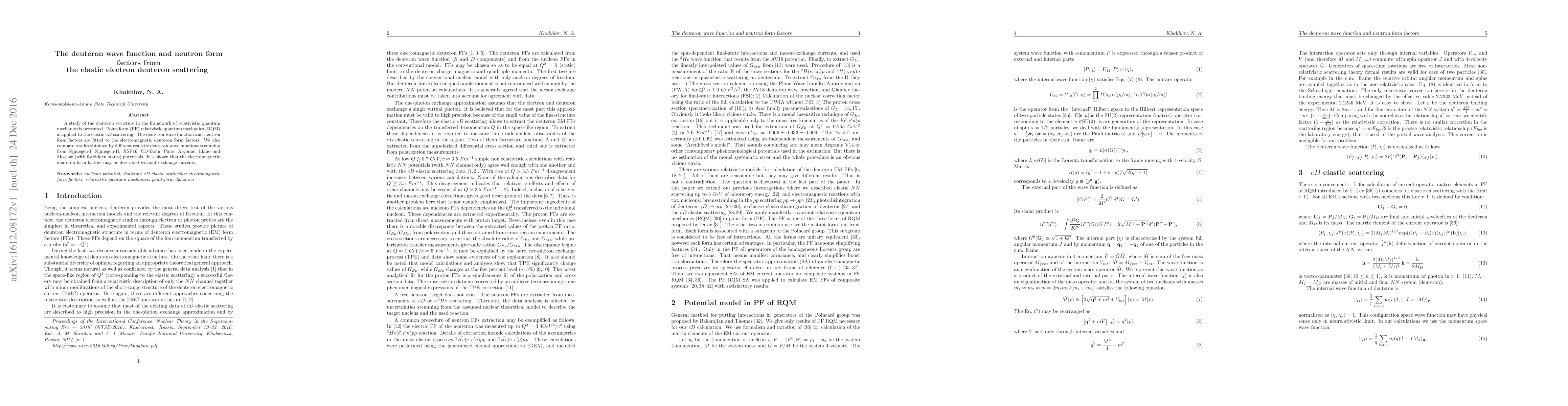 A combination of experimental and theoretical approaches was used to investigate the deuteron wave function and neutron form factors.
