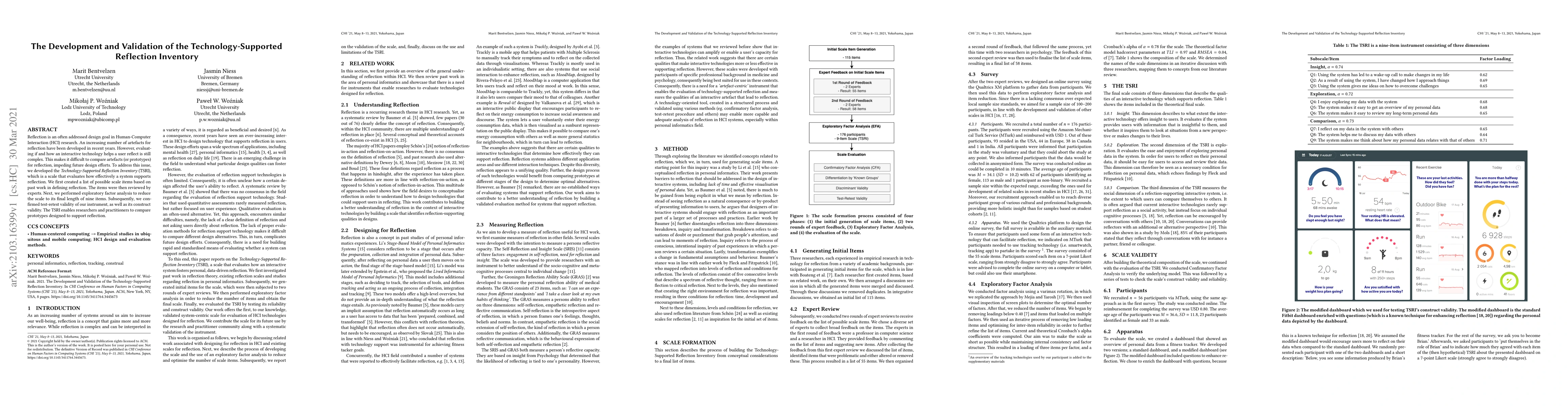 Reflection is an often addressed design goal in Human-Computer Interaction (HCI) research. An increasing number of artefacts for reflection have been developed in recent years. However, evaluating if and how an interactive technology helps a user reflect is still complex. This makes it difficult to compare artefacts (or prototypes) for reflection, impeding future design efforts. To address this issue, we developed the \emph{Technology-Supported Reflection Inventory} (TSRI), which is a scale that evaluates how effectively a system supports reflection. We first created a list of possible scale items based on past work in defining reflection. The items were then reviewed by experts. Next, we performed exploratory factor analysis to reduce the scale to its final length of nine items. Subsequently, we confirmed test-retest validity of our instrument, as well as its construct validity. The TSRI enables researchers and practitioners to compare prototypes designed to support reflection.