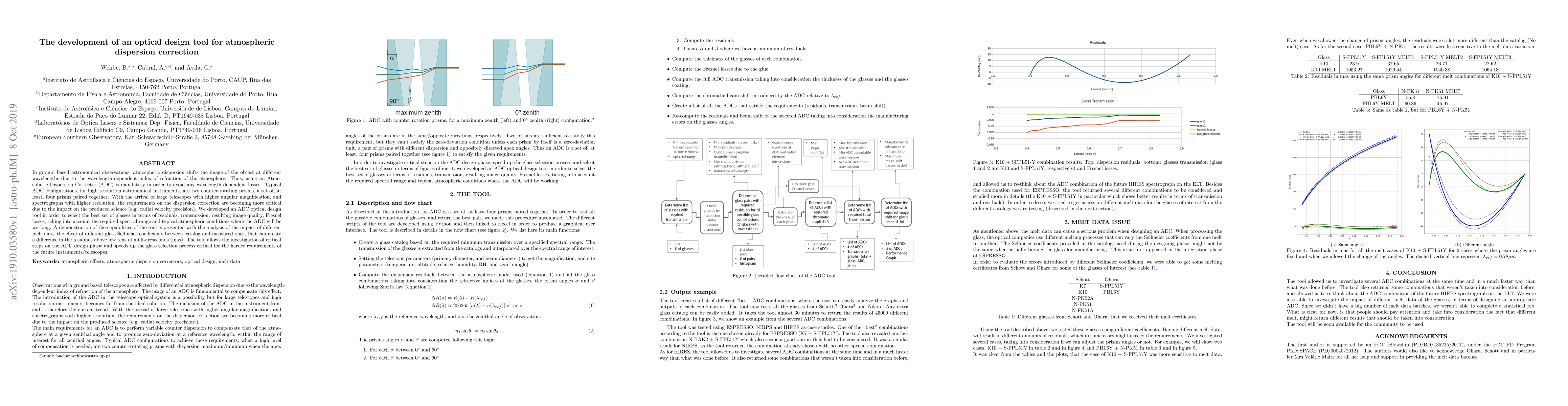 This paper presents an optical design tool for selecting optimal glasses for Atmospheric Dispersion Correctors (ADCs) in high-resolution astronomical instruments, addressing the critical need for precise dispersion correction in modern telescopes and spectrographs. The tool evaluates residuals, transmission, image quality, and Fresnel losses, aiding in the design of ADCs that meet stringent future requirements.