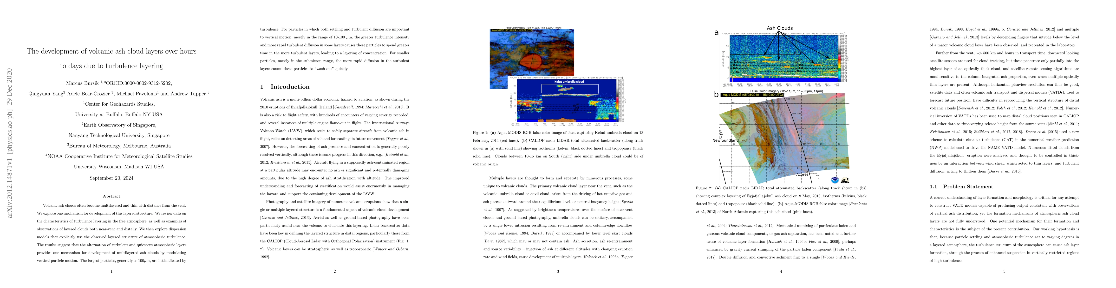 Volcanic ash clouds often become multilayered and thin with distance from the vent. We explore one mechanism for development of this layered structure. We review data on the characteristics of turbulence layering in the free atmosphere, as well as examples of observations of layered clouds both near-vent and distally. We then explore dispersion models that explicitly use the observed layered structure of atmospheric turbulence. The results suggest that the alternation of turbulent and quiescent atmospheric layers provides one mechanism for development of multilayered ash clouds by modulating vertical particle motion. The largest particles, generally $> 100 \mu$m, are little affected by turbulence. For particles in which both settling and turbulent diffusion are important to vertical motion, mostly in the range of 10-100 $\mu$m, the greater turbulence intensity and more rapid turbulent diffusion in some layers causes these particles to spend greater time in the more turbulent layers, leading to a layering of concentration. For smaller particles, mostly in the submicron range, the more rapid diffusion in the turbulent layers causes these particles to ``wash out'' quickly.