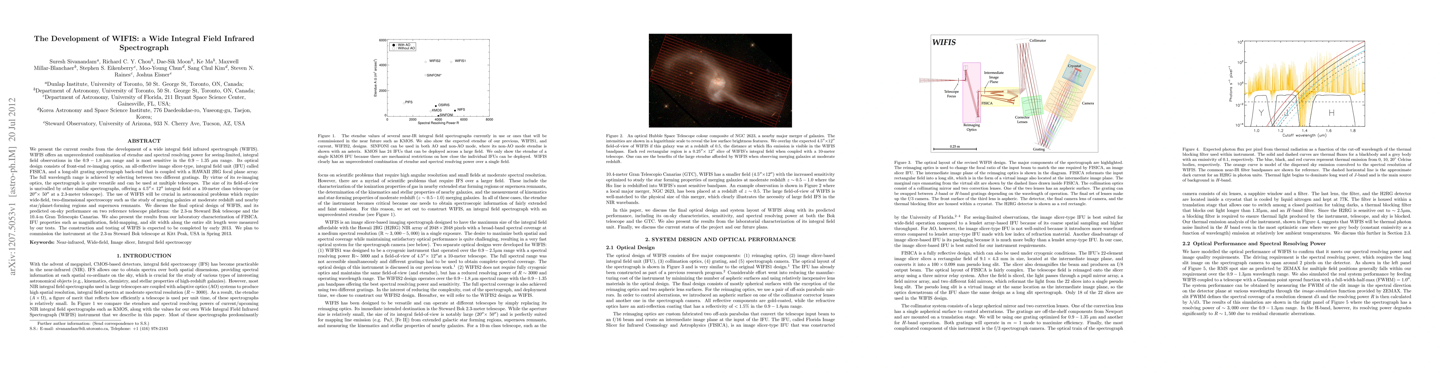 The WIFIS spectrograph combines high etendue and spectral resolution for infrared integral field observations, featuring a versatile optical design and a wide field-of-view, making it ideal for studying merging galaxies and star-forming regions. The instrument is set to be commissioned in Spring 2013.