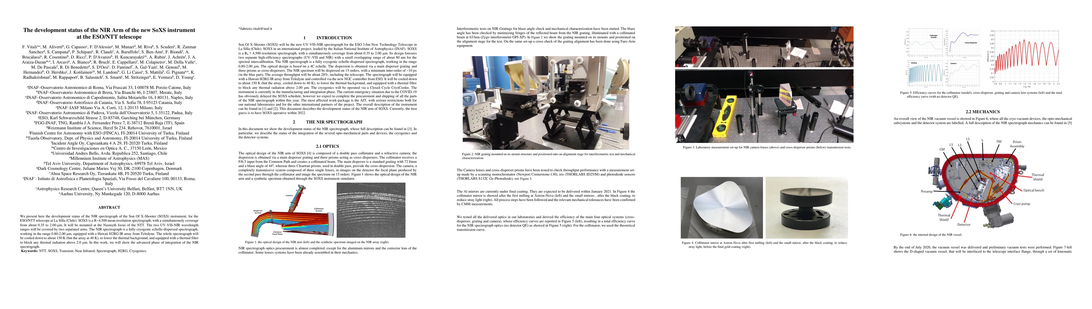 We present here the development status of the NIR spectrograph of the Son Of X-Shooter (SOXS) instrument, for the ESO/NTT telescope at La Silla (Chile). SOXS is a R~4,500 mean resolution spectrograph, with a simultaneously coverage from about 0.35 to 2.00 micron. It will be mounted at the Nasmyth focus of the NTT. The two UV-VIS-NIR wavelength ranges will be covered by two separated arms. The NIR spectrograph is a fully cryogenic echelle-dispersed spectrograph, working in the range 0.80-2.00 micron, equipped with a Hawaii H2RG IR array from Teledyne. The whole spectrograph will be cooled down to about 150 K (but the array at 40 K), to lower the thermal background, and equipped with a thermal filter to block any thermal radiation above 2.0 micron. In this work, we will show the advanced phase of integration of the NIR spectrograph.