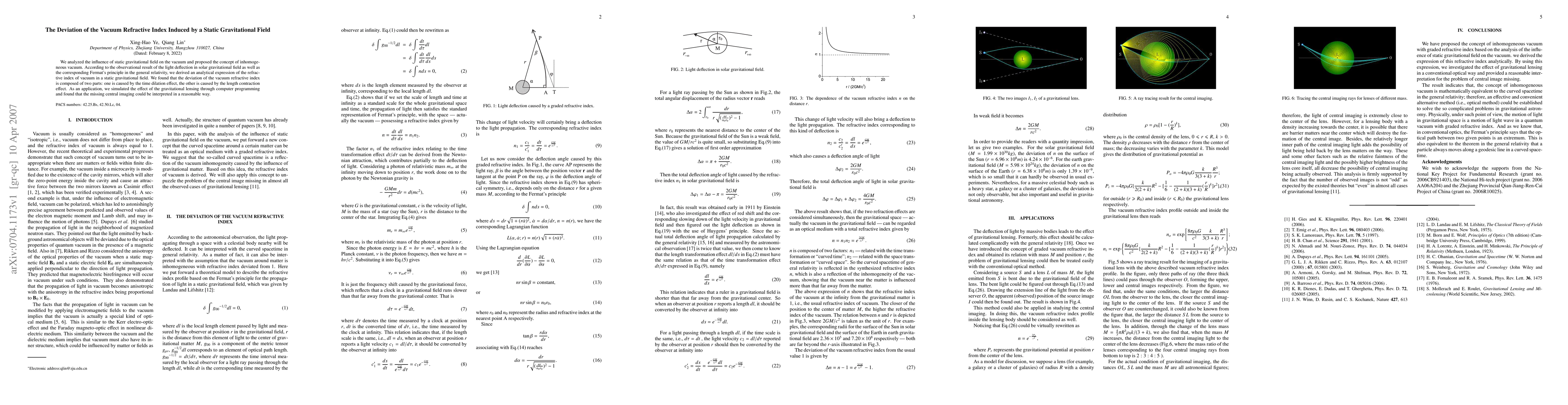 This paper investigates the impact of static gravitational fields on the vacuum refractive index, proposing an inhomogeneous vacuum concept. It derives an analytical expression for the refractive index, revealing that the deviation consists of time dilation and length contraction effects, and demonstrates gravitational lensing through simulation.