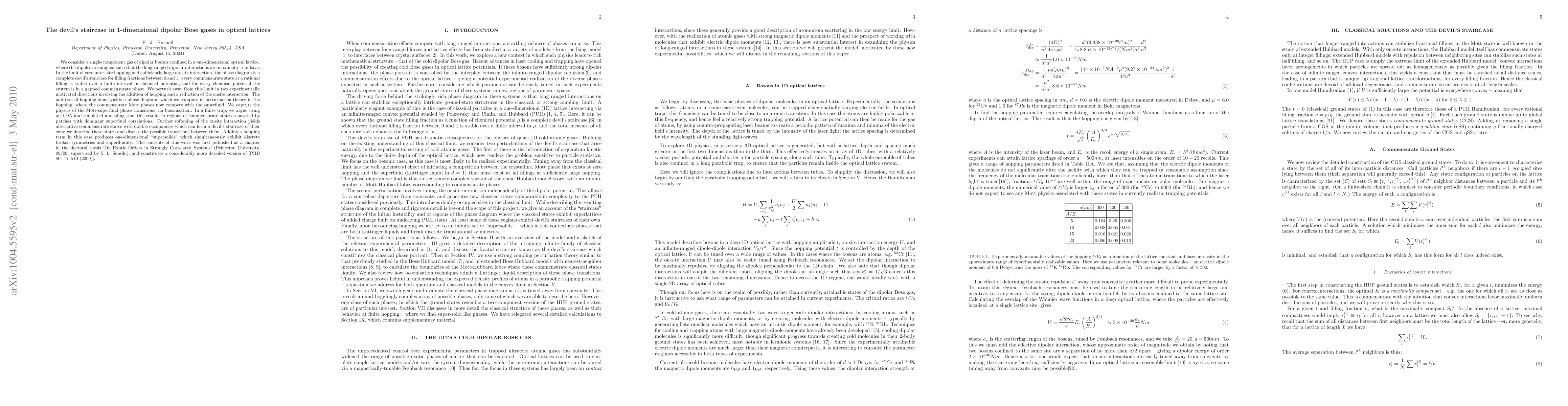 This paper explores the phase diagram of dipolar Bose gases in a 1D optical lattice, revealing a devil's staircase of stable commensurate phases at rational fillings. It examines the effects of adding inter-site hopping and reducing on-site interactions, leading to competition between Mott phases and superfluidity, and the emergence of "supersolids" in certain conditions.