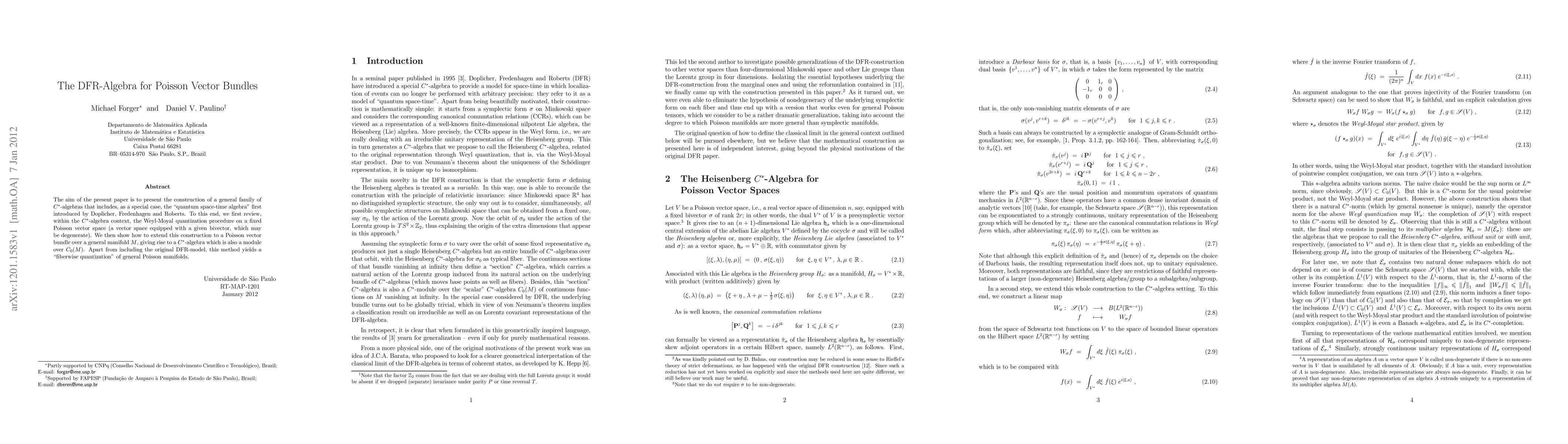 The aim of the present paper is to present the construction of a general family of $C^*$-algebras that includes, as a special case, the "quantum space-time algebra" first introduced by Doplicher, Fredenhagen and Roberts. To this end, we first review, within the $C^*$-algebra context, the Weyl-Moyal quantization procedure on a fixed Poisson vector space (a vector space equipped with a given bivector, which may be degenerate). We then show how to extend this construction to a Poisson vector bundle over a general manifold $M$, giving rise to a $C^*$-algebra which is also a module over $C_0(M)$. Apart from including the original DFR-model, this method yields a "fiberwise quantization" of general Poisson manifolds.