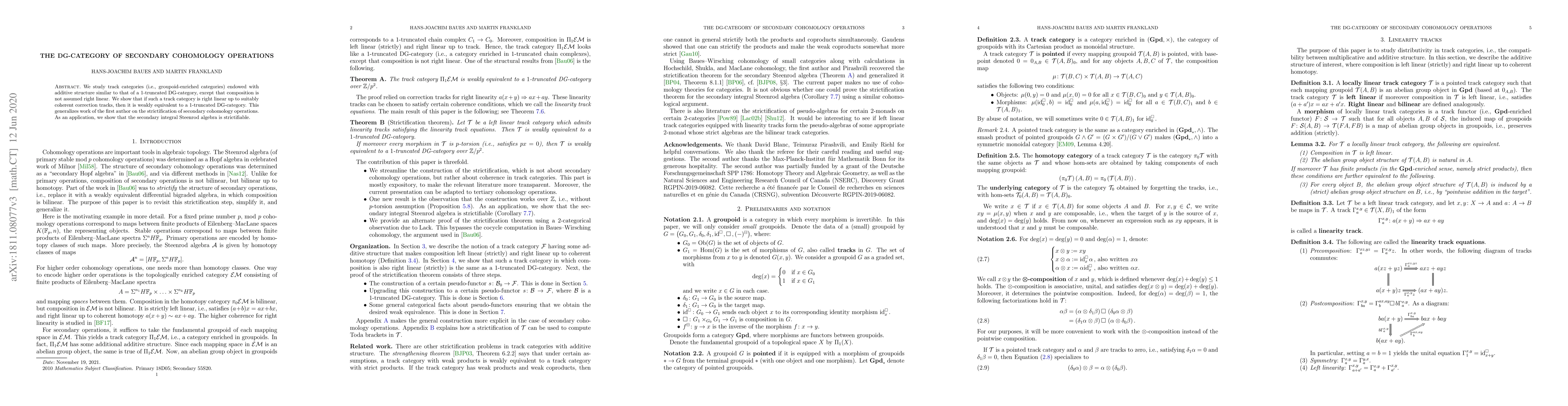 We study track categories (i.e., groupoid-enriched categories) endowed with additive structure similar to that of a 1-truncated DG-category, except that composition is not assumed right linear. We show that if such a track category is right linear up to suitably coherent correction tracks, then it is weakly equivalent to a 1-truncated DG-category. This generalizes work of the first author on the strictification of secondary cohomology operations. As an application, we show that the secondary integral Steenrod algebra is strictifiable.