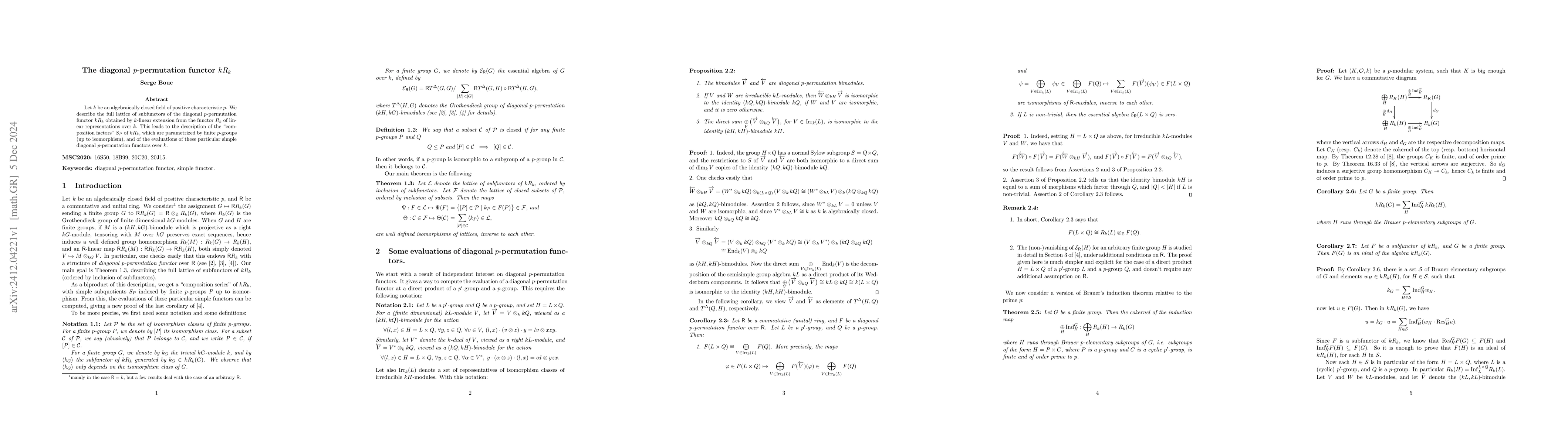 This paper characterizes the lattice of subfunctors for the diagonal $p$-permutation functor $kR_k$ over an algebraically closed field $k$ of characteristic $p$. It identifies the "composition factors" $S_P$ of $kR_k$, parametrized by finite $p$-groups, and examines their evaluations over $k$.