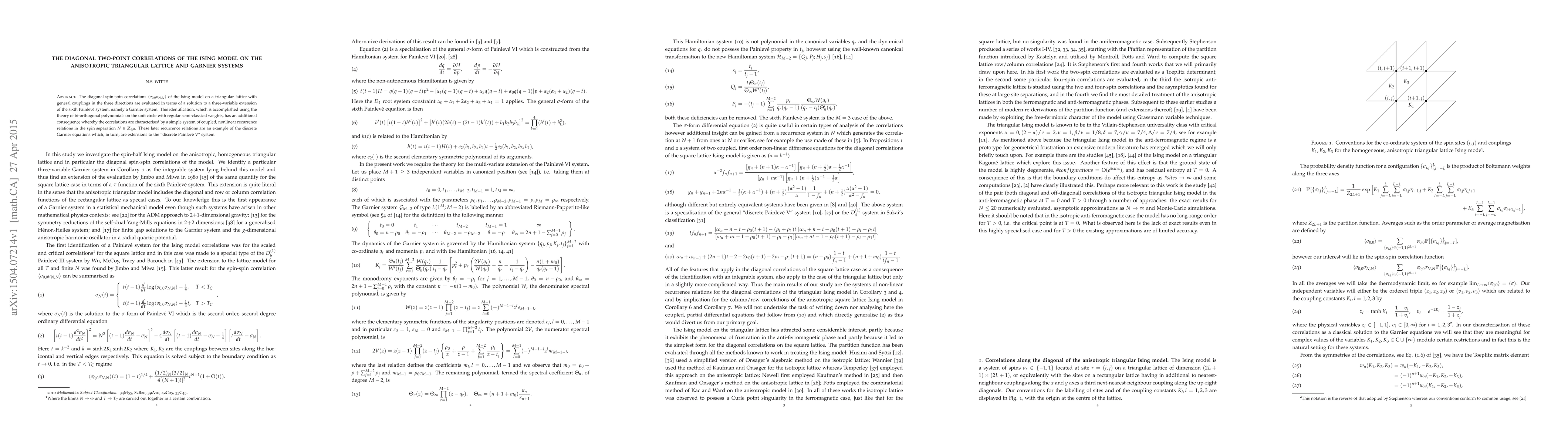 This paper evaluates diagonal spin-spin correlations in the Ising model on an anisotropic triangular lattice using a three-variable extension of the sixth Painlevé system, known as a Garnier system. The analysis reveals these correlations are characterized by coupled nonlinear recurrence relations, exemplifying the discrete Garnier equations.