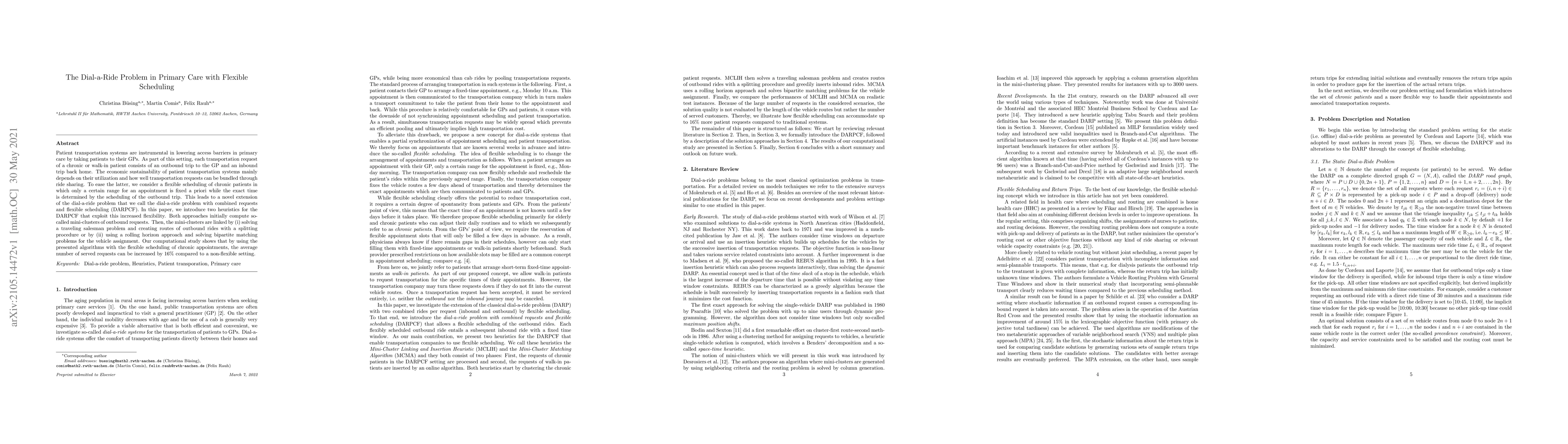 Patient transportation systems are instrumental in lowering access barriers in primary care by taking patients to their GPs. As part of this setting, each transportation request of a chronic or walk-in patient consists of an outbound trip to the GP and an inbound trip back home. The economic sustainability of patient transportation systems mainly depends on their utilization and how well transportation requests can be bundled through ride sharing. To ease the latter, we consider a flexible scheduling of chronic patients in which only a certain range for an appointment is fixed a priori while the exact time is determined by the scheduling of the outbound trip. This leads to a novel extension of the dial-a-ride problem that we call the dial-a-ride problem with combined requests and flexible scheduling (DARPCF). In this paper, we introduce two heuristics for the DARPCF that exploit this increased flexibility. Both approaches initially compute so-called mini-clusters of outbound requests. Then, the mini-clusters are linked by (i) solving a traveling salesman problem and creating routes of outbound rides with a splitting procedure or by (ii) using a rolling horizon approach and solving bipartite matching problems for the vehicle assignment. Our computational study shows that by using the presented algorithms with the flexible scheduling of chronic appointments, the average number of served requests can be increased by 16% compared to a non-flexible setting.