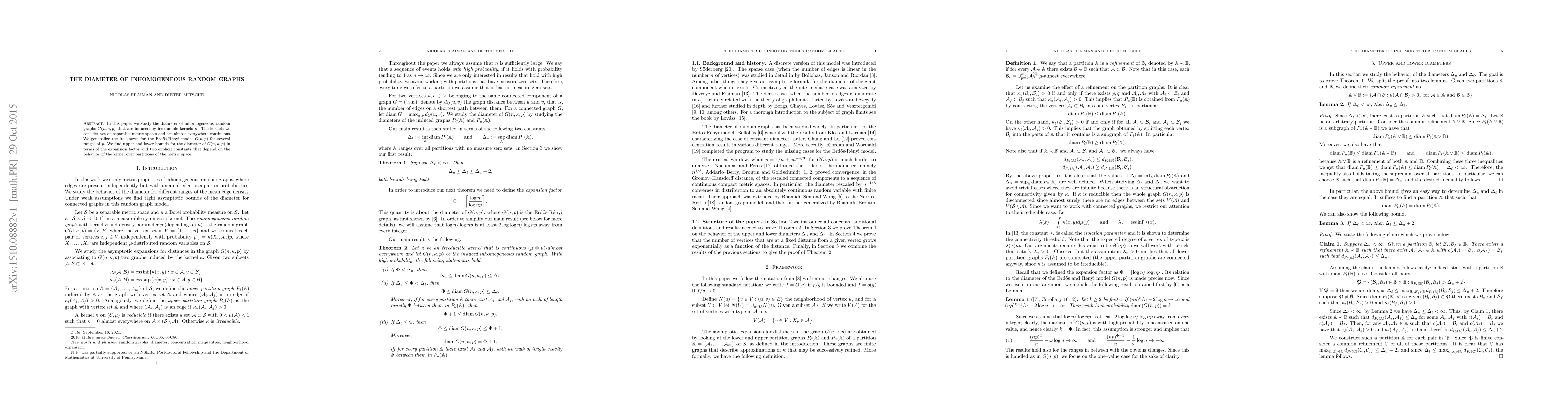 This paper studies the diameter of Inhomogeneous random graphs, providing upper and lower bounds for their size based on the behavior of irreducible kernels over partitions of a metric space.