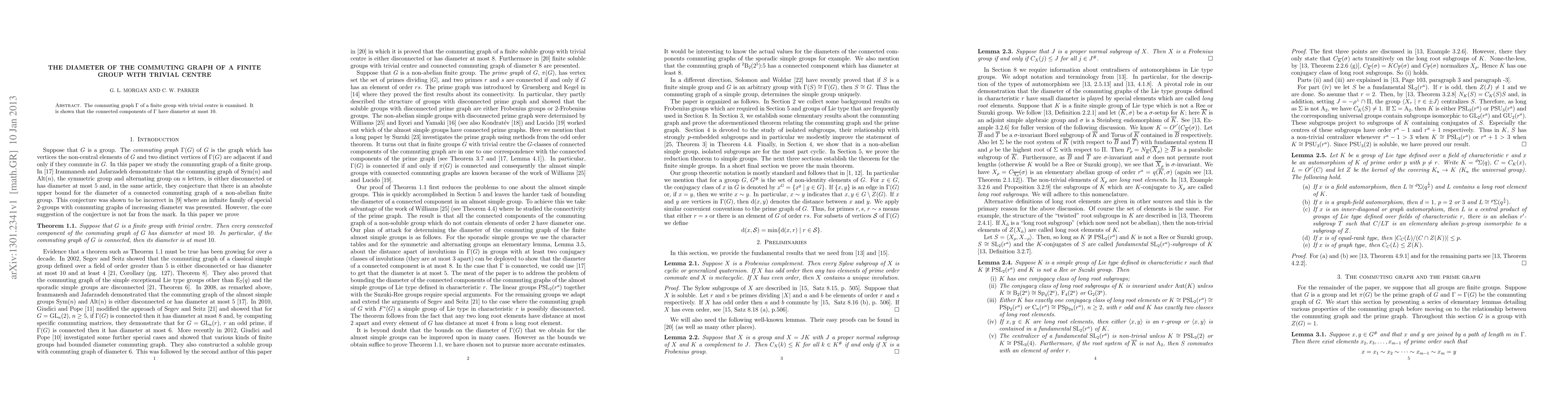 Summary: This paper investigates the commuting graph of finite groups with trivial centres, demonstrating that the diameter of its connected components is at most 10. The study provides insights into the structure of such groups through their commuting relationships.