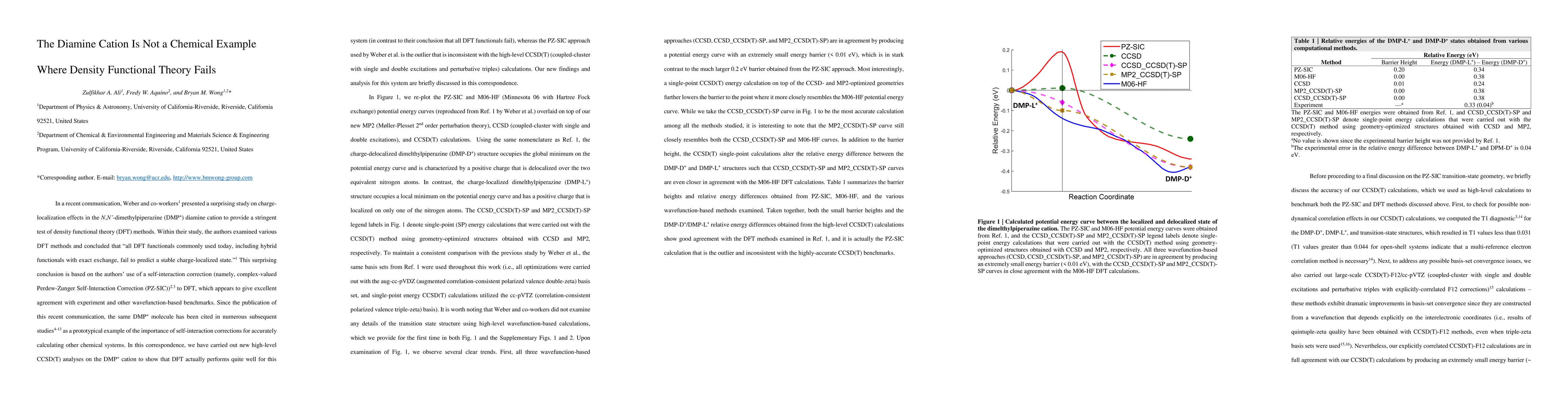 In a recent communication, Weber and co-workers presented a surprising study on charge-localization effects in the N,N'-dimethylpiperazine (DMP+) diamine cation to provide a stringent test of density functional theory (DFT) methods. Within their study, the authors examined various DFT methods and concluded that "all DFT functionals commonly used today, including hybrid functionals with exact exchange, fail to predict a stable charge-localized state." This surprising conclusion is based on the authors' use of a self-interaction correction (namely, complex-valued Perdew-Zunger Self-Interaction Correction (PZ-SIC)) to DFT, which appears to give excellent agreement with experiment and other wavefunction-based benchmarks. Since the publication of this recent communication, the same DMP+ molecule has been cited in numerous subsequent studies as a prototypical example of the importance of self-interaction corrections for accurately calculating other chemical systems. In this correspondence, we have carried out new high-level CCSD(T) analyses on the DMP+ cation to show that DFT actually performs quite well for this system (in contrast to their conclusion that all DFT functionals fail), whereas the PZ-SIC approach used by Weber et al. is the outlier that is inconsistent with the high-level CCSD(T) (coupled-cluster with single and double excitations and perturbative triples) calculations. Our new findings and analysis for this system are briefly discussed in this correspondence.
