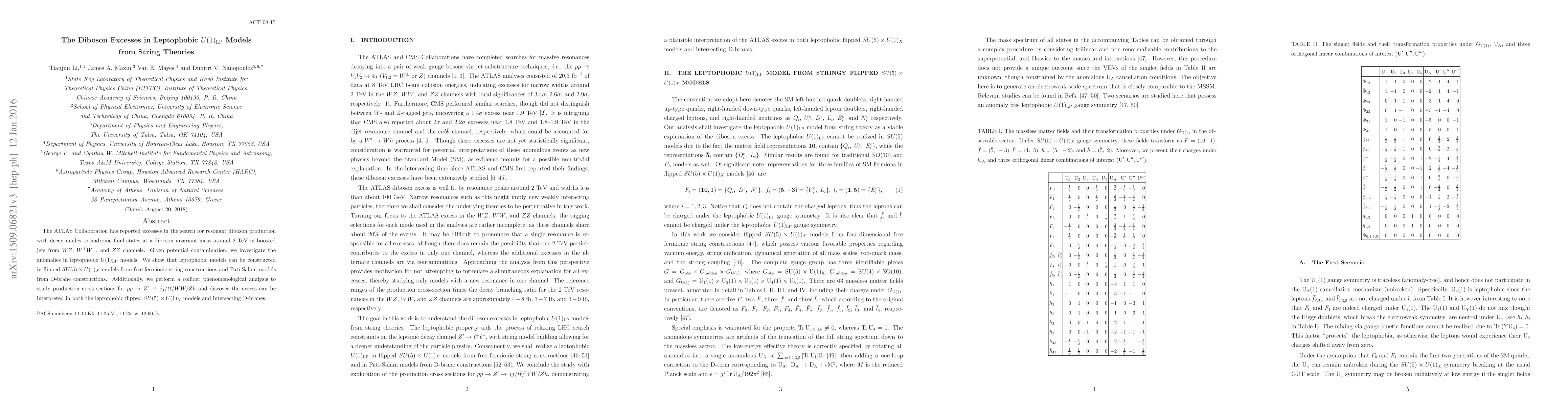 This paper explores the diboson excesses reported by ATLAS in the context of leptophobic $U(1)_{\rm LP}$ models derived from string theories, specifically flipped $SU(5)\times U(1)_X$ and D-brane constructions, and finds that these models can explain the observed anomalies in diboson production.