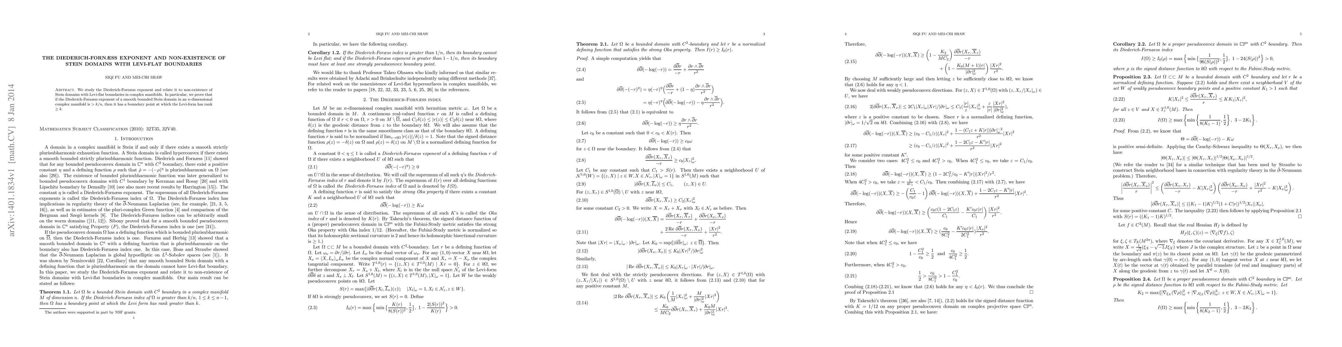 Summary: This paper investigates the Diederich-Fornæss exponent and demonstrates its connection to the non-existence of Stein domains with Levi-flat boundaries in complex manifolds. It proves that a smooth bounded Stein domain with an exponent greater than $k/n$ cannot have a Levi-flat boundary.
