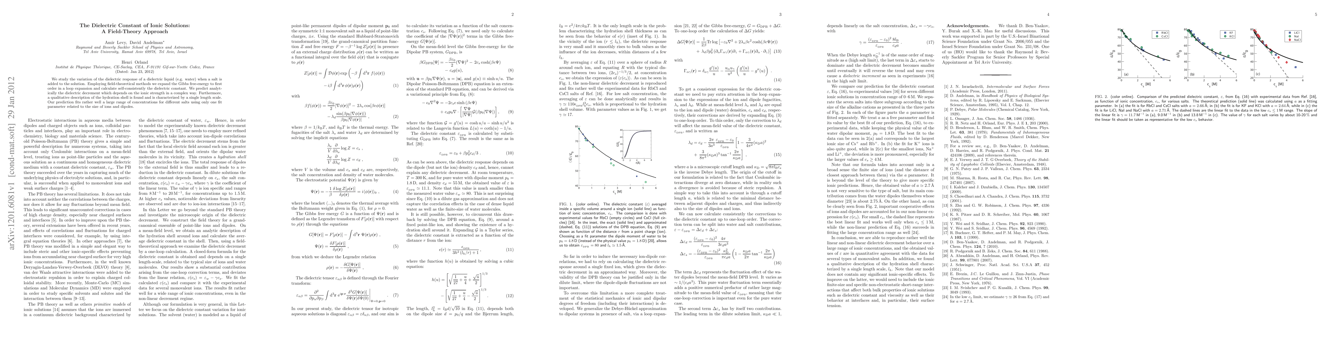 This paper employs field-theoretical methods to analyze the dielectric response of ionic solutions, predicting the dielectric decrement based on ionic strength and characterizing the hydration shell with a single length scale. The model fits a wide range of salt concentrations using a single parameter related to ion and dipole sizes.