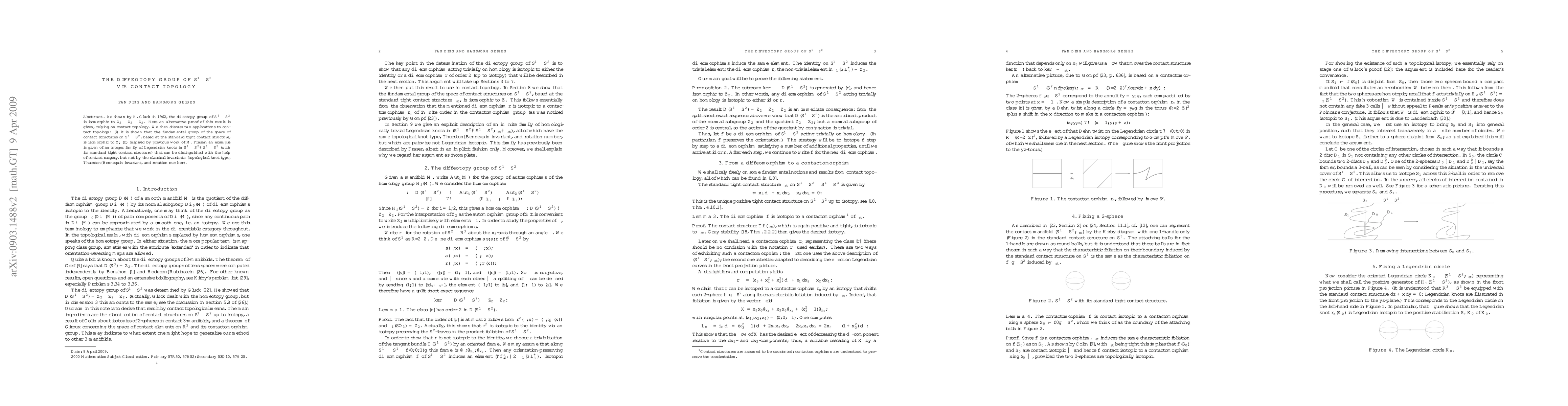 This paper provides an alternative proof of Gluck's 1962 result that the diffeotopy group of S^1 × S^2 is isomorphic to Z_2 + Z_2 + Z_2, using contact topology. It also explores applications to contact topology, including the fundamental group of contact structures on S^1 × S^2 and a family of Legendrian knots distinguishable via contact surgery but not by classical invariants.
