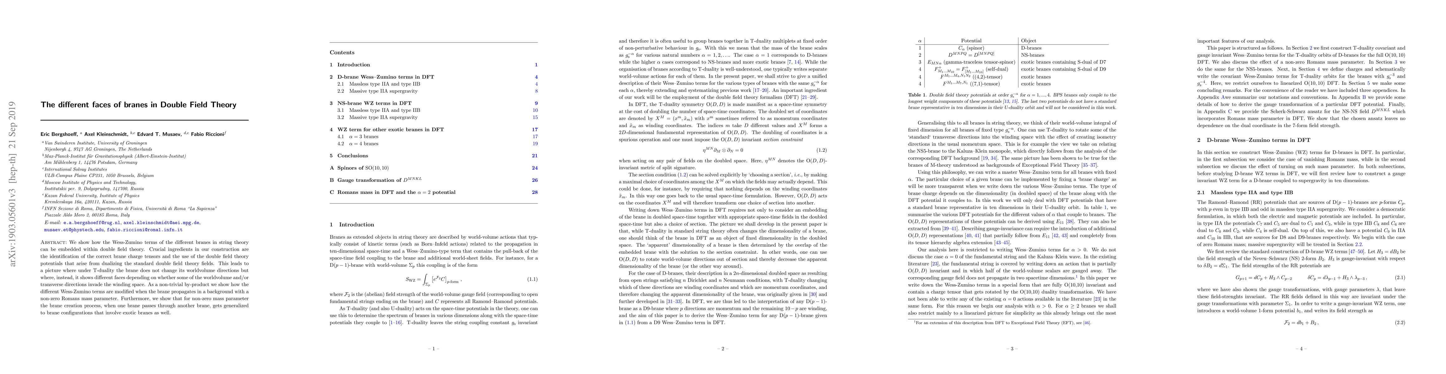 This paper explores how various branes in string theory can be integrated into Double Field Theory, identifying appropriate brane charge tensors and utilizing dualized potentials. It reveals that under T-duality, branes exhibit different "faces" based on the interaction of their directions with the winding space, and discusses modifications to Wess-Zumino terms and brane creation processes in the presence of a non-zero Romans mass parameter.