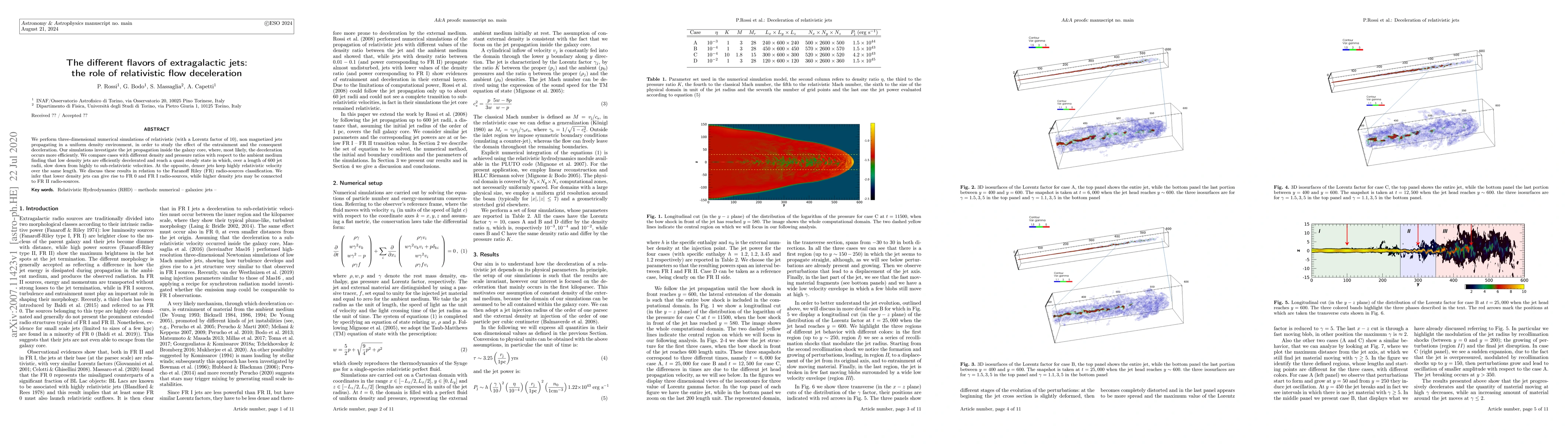 Numerical simulations show that low-density jets in galaxies slow down faster than high-density jets, which can lead to the formation of different types of radio sources.