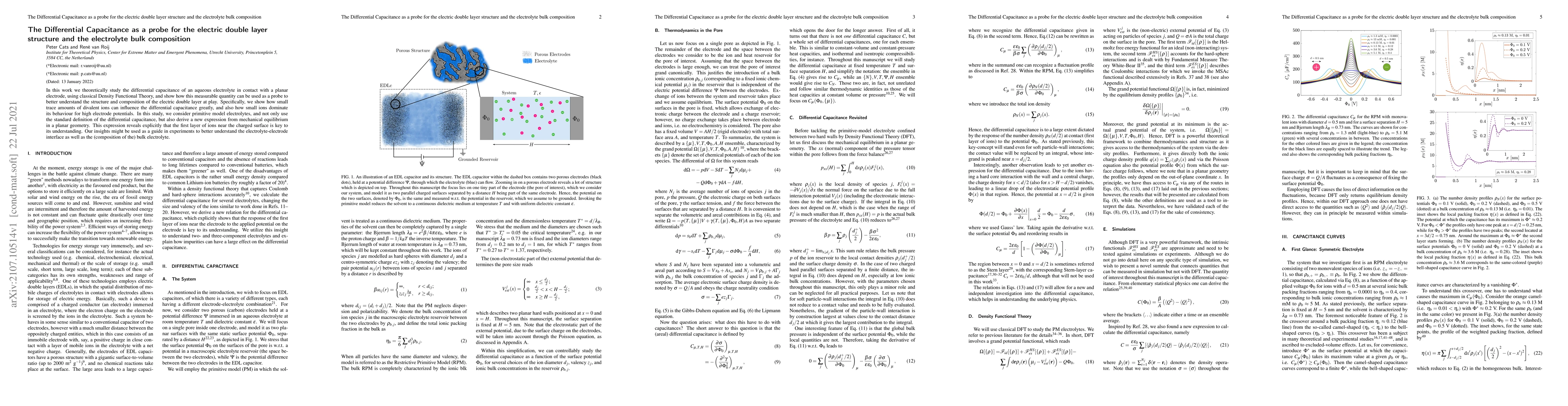 In this work we theoretically study the differential capacitance of an aqueous electrolyte in contact with a planar electrode, using classical Density Functional Theory, and show how this measurable quantity can be used as a probe to better understand the structure and composition of the electric double layer at play. Specifically, we show how small trace amounts of divalent ions can influence the differential capacitance greatly, and also how small ions dominate its behaviour for high electrode potentials. In this study, we consider primitive model electrolytes, and not only use the standard definition of the differential capacitance, but also derive a new expression from mechanical equilibrium in a planar geometry. This expression reveals explicitly that the first layer of ions near the charged surface is key to its understanding. Our insights might be used as a guide in experiments to better understand the electrolyte-electrode interface as well as the (composition of the) bulk electrolyte.